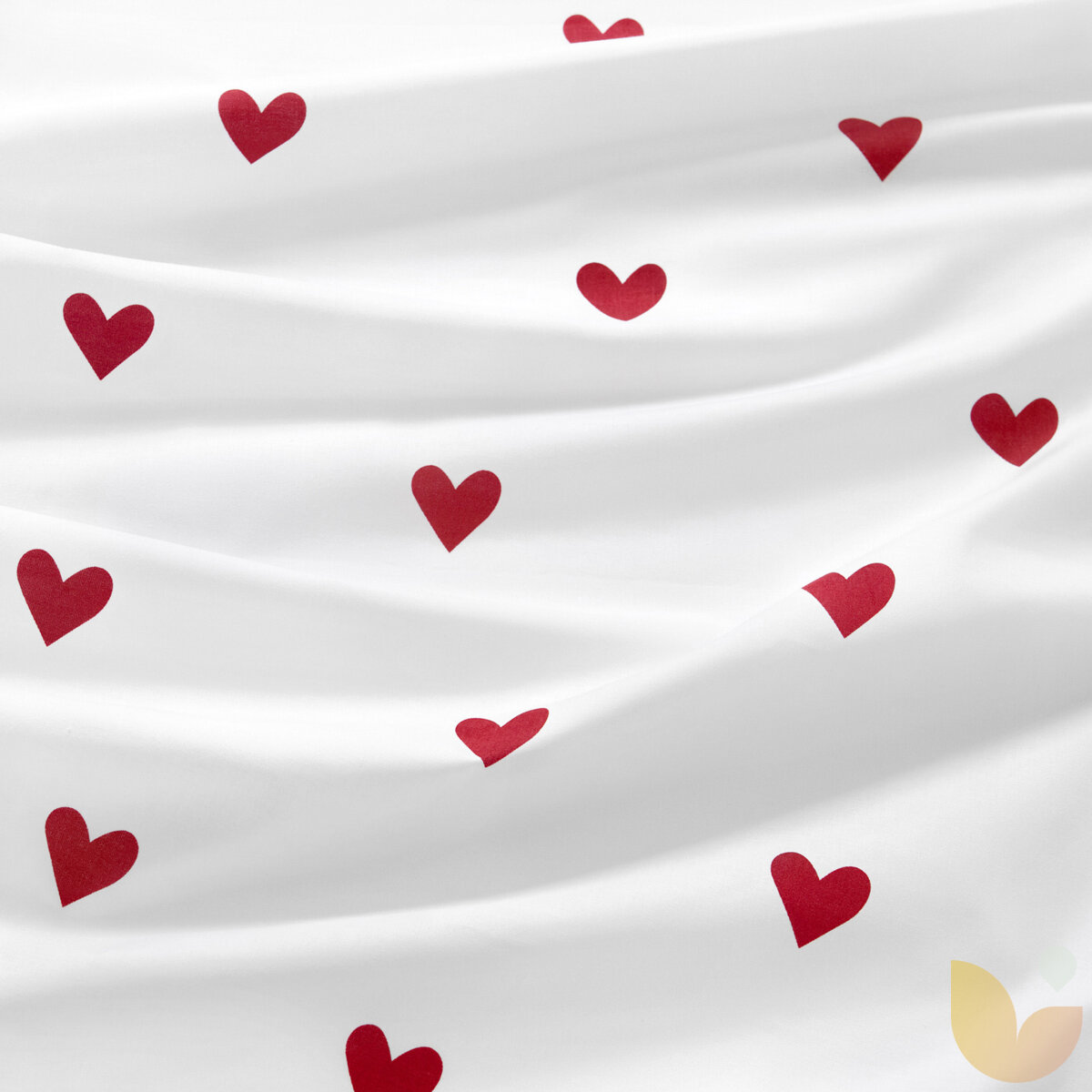 Spannbettlaken aus Baumwolle - Rote Herzchen auf Weiß