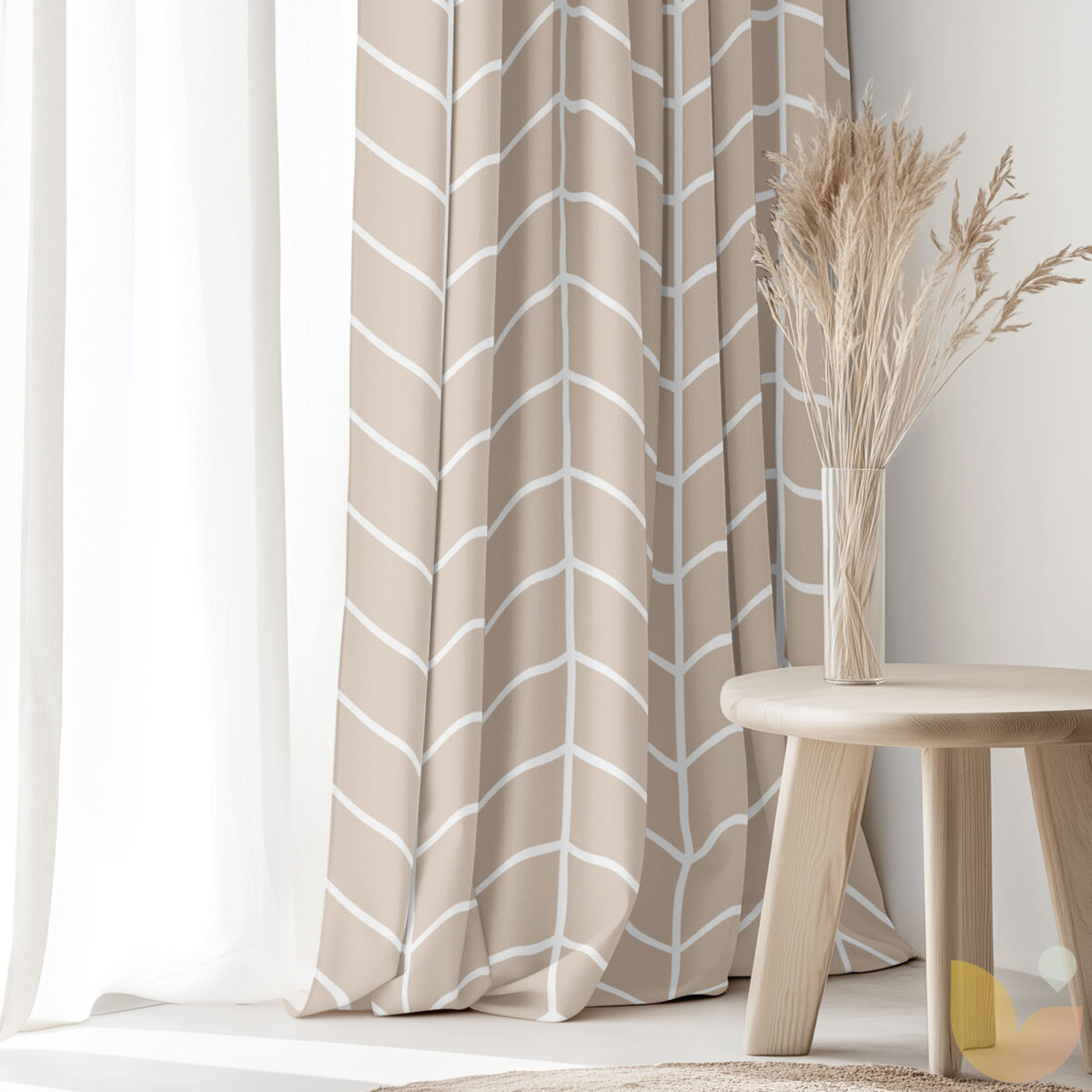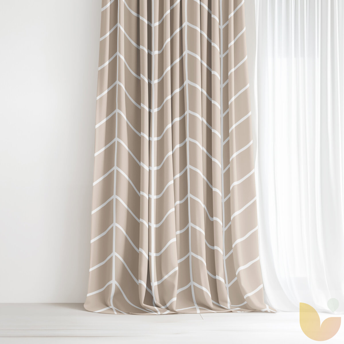 Vorhang aus Baumwolle - Weißer Zickzack auf Beige