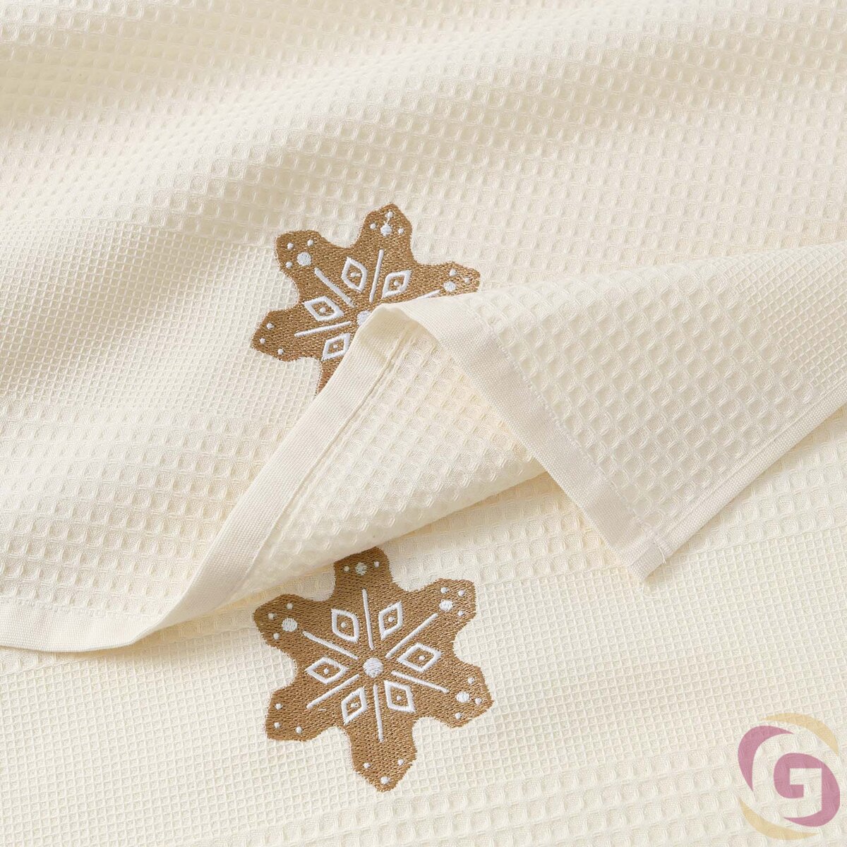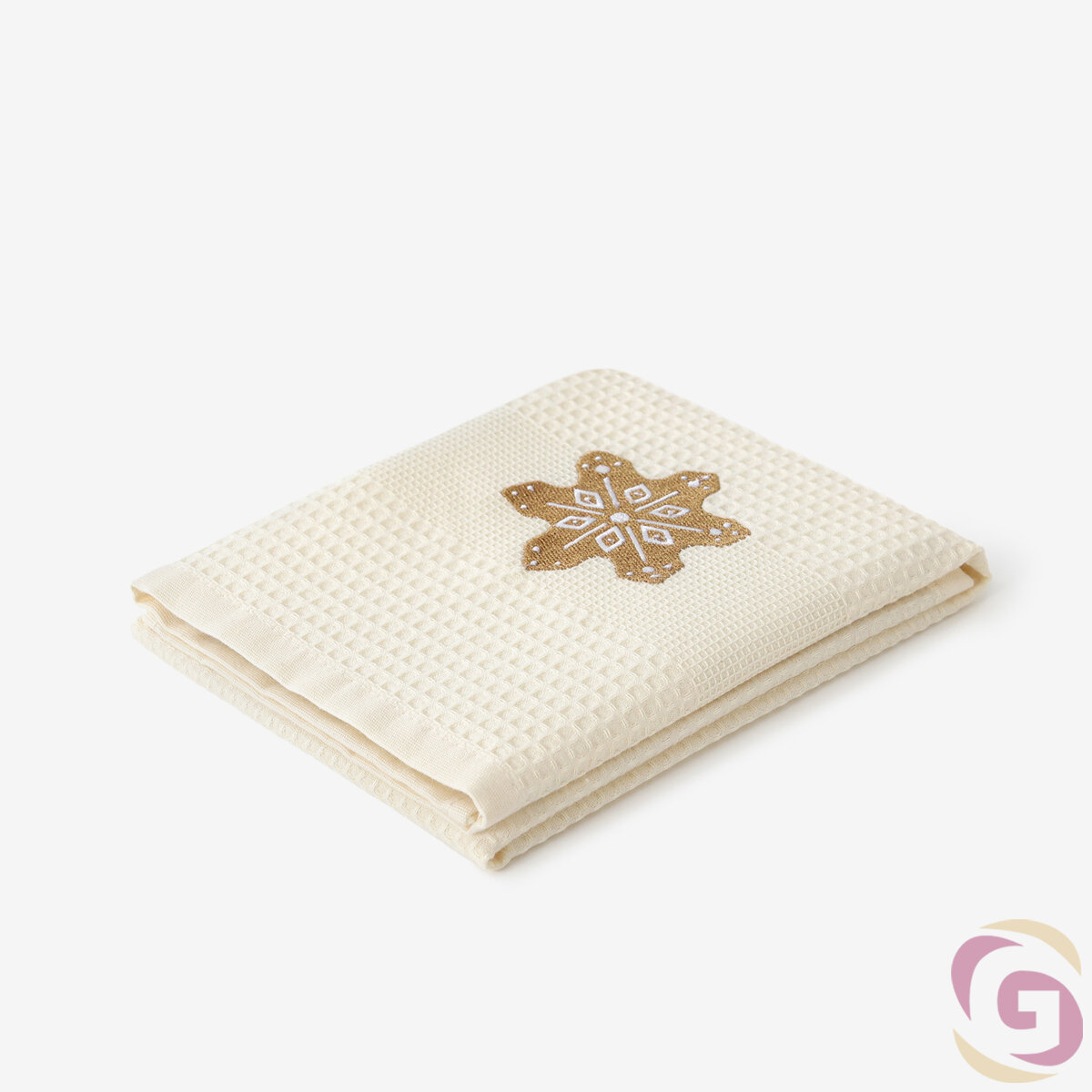 Waffel-Geschirrtuch mit Stickerei - Lebkuchen auf Creme