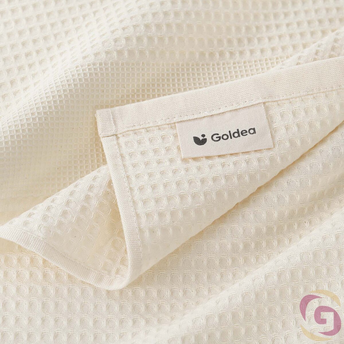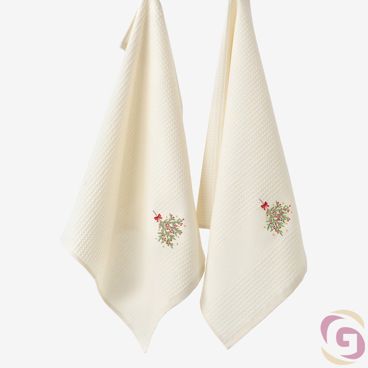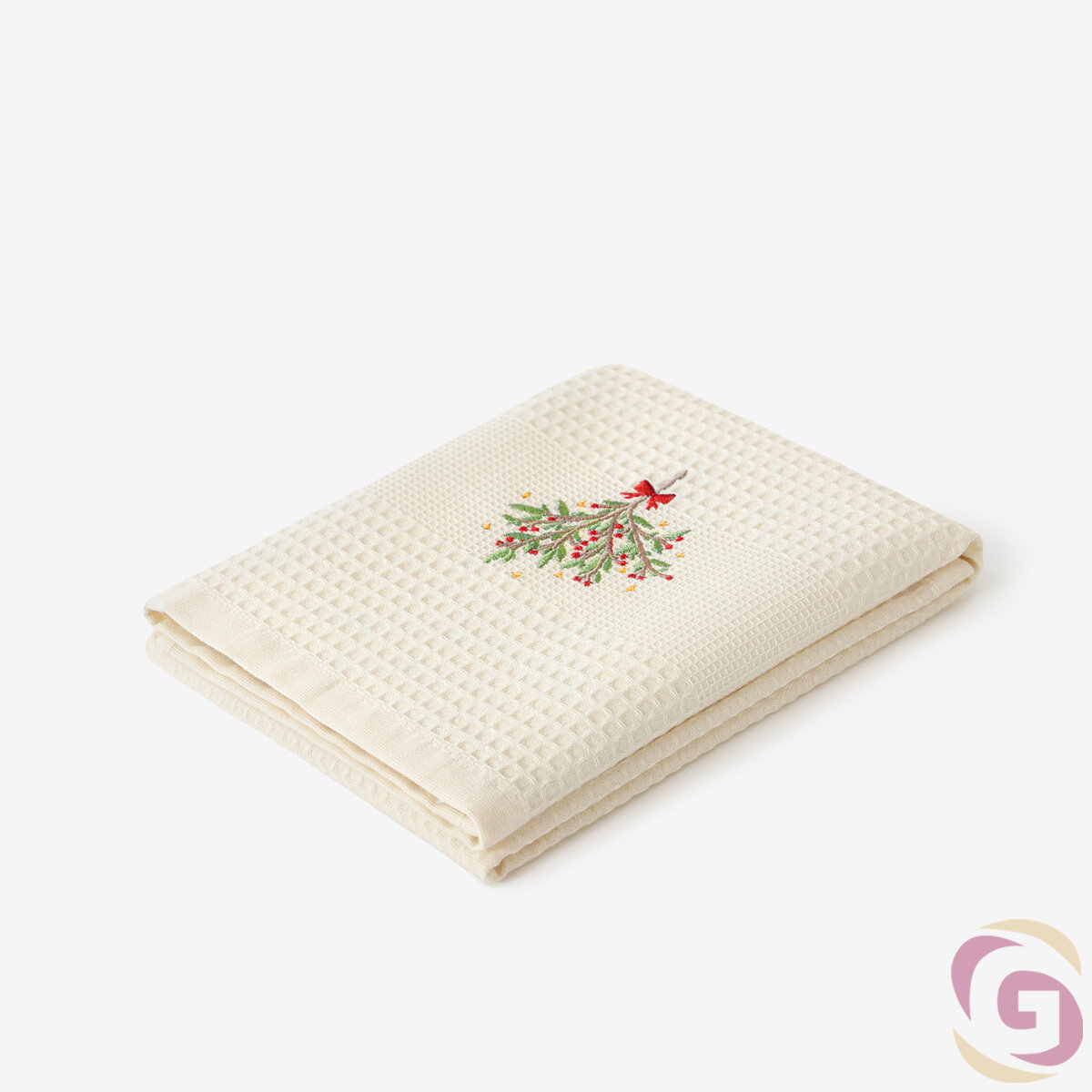 Waffel-Geschirrtuch mit Weihnachtsstickerei - Mistel auf cremefarbenem Grund