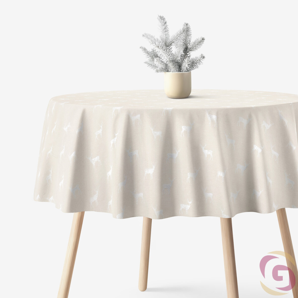 Weihnacht Runde Tischdecke Natura - Hirsche auf natürlichem