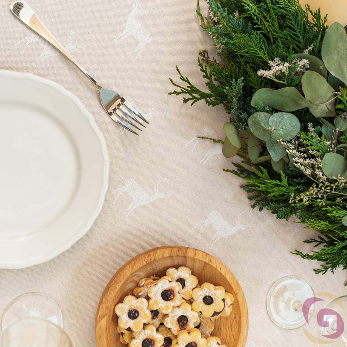 Weihnachtliche eckige Tischdecke Natura - Hirsche auf natürlichem