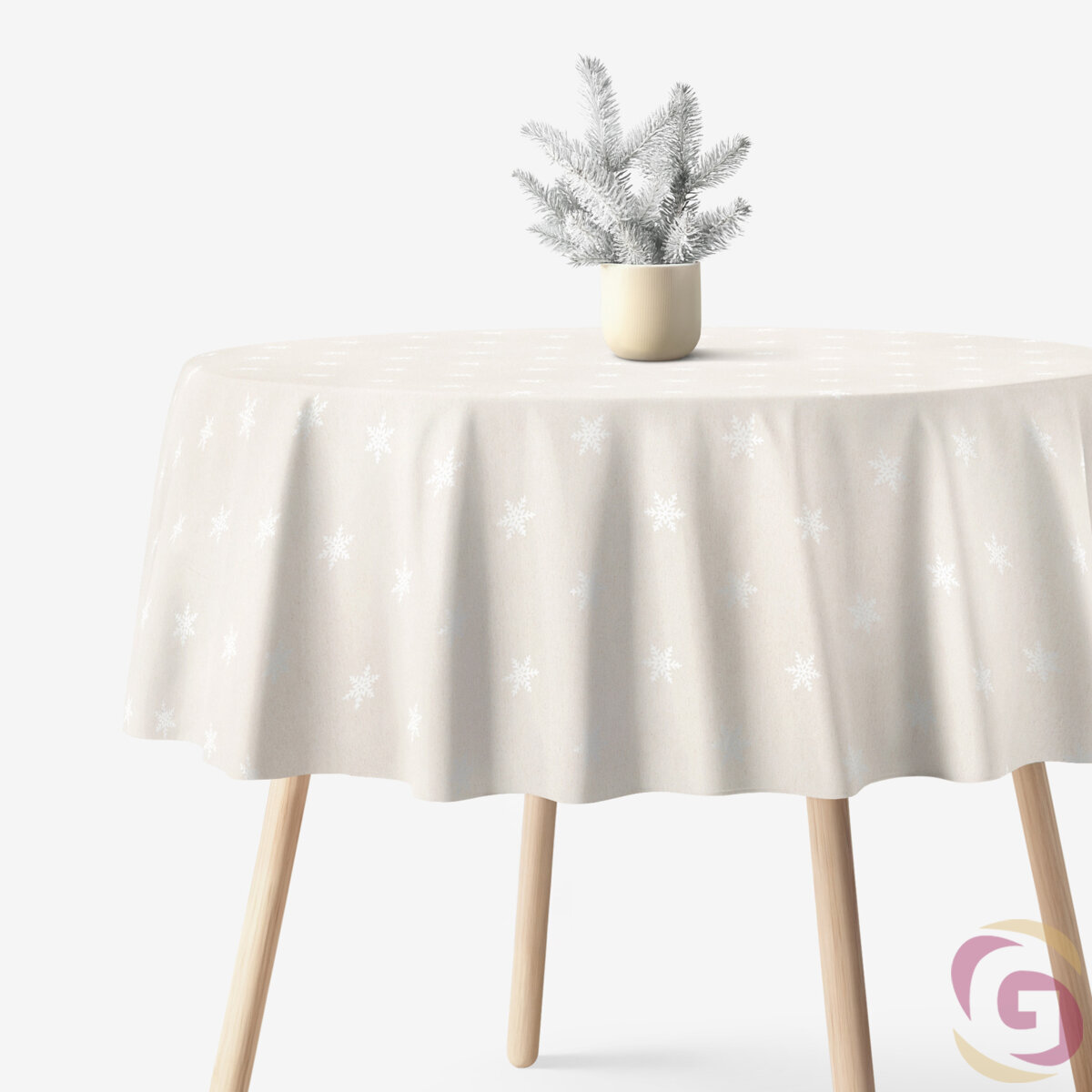 Weihnacht Runde Tischdecke Natura - Schneeflocken auf natürlichem