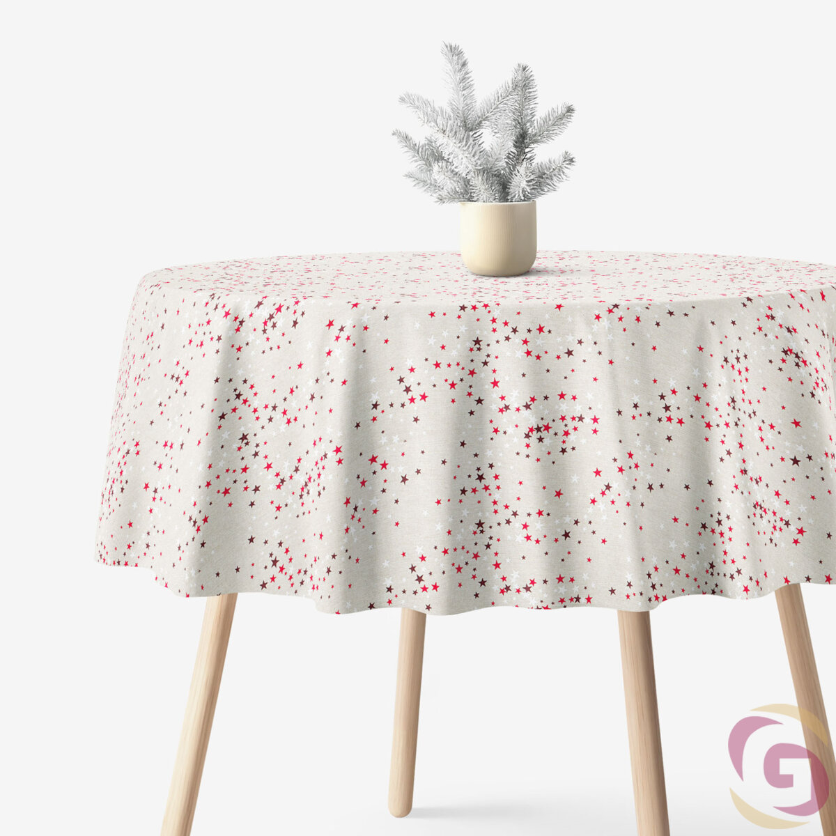 Weihnacht Runde Tischdecke Valencia - Sterne auf Naturfarbe