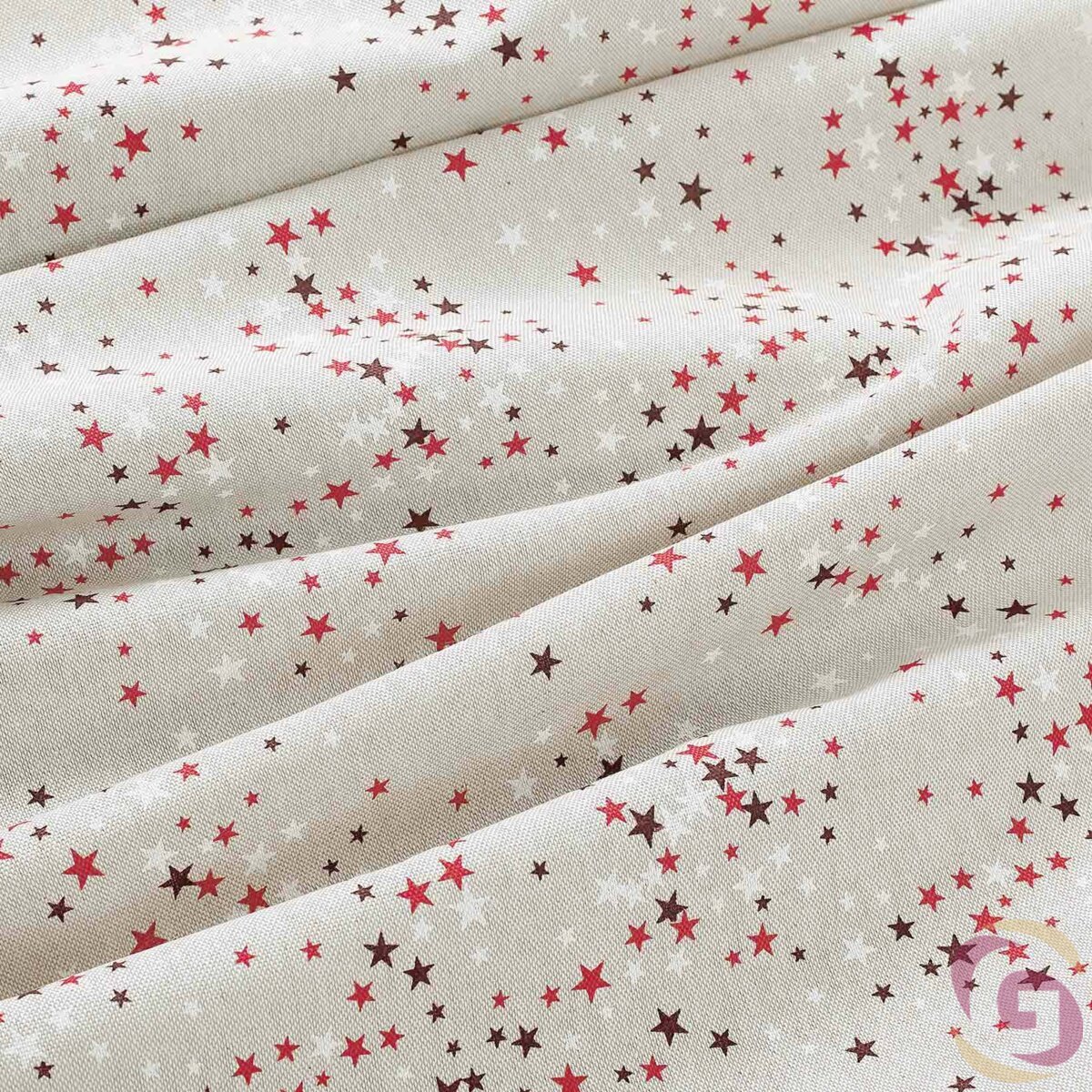 Weihnachtliche eckige Tischdecke Valencia - Sterne auf Naturfarbe