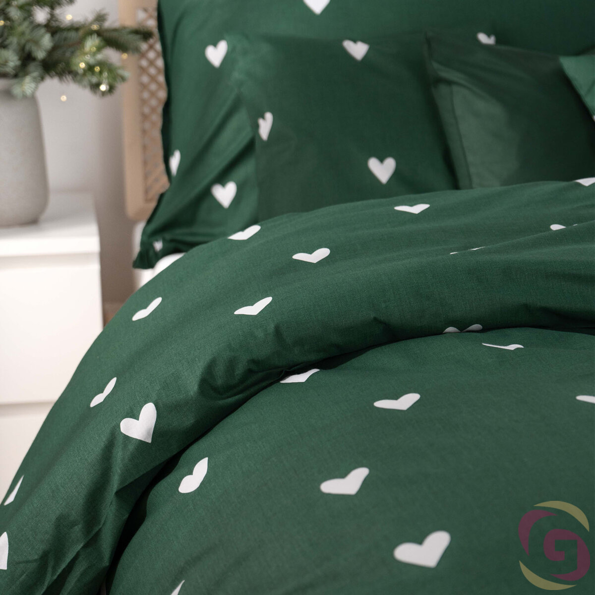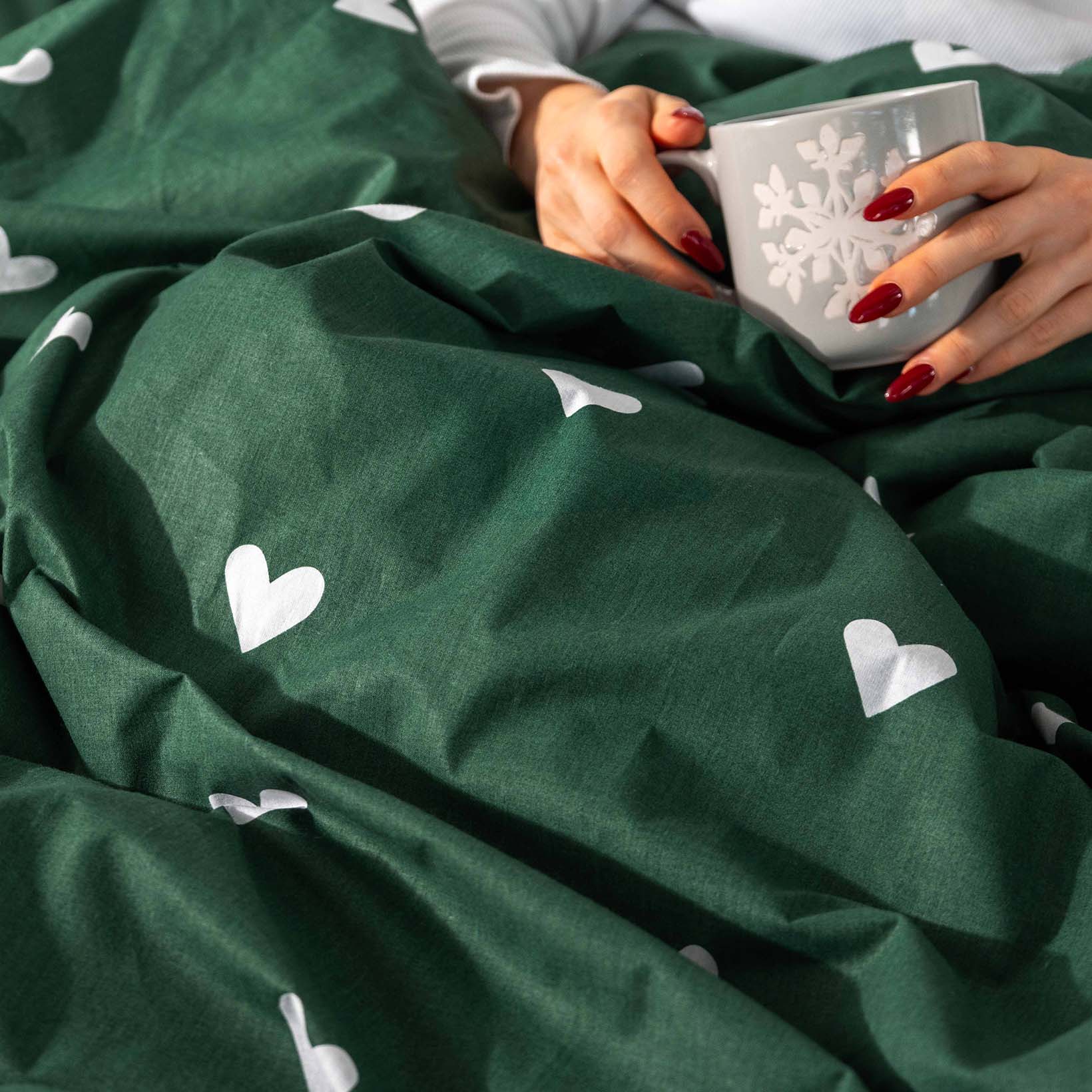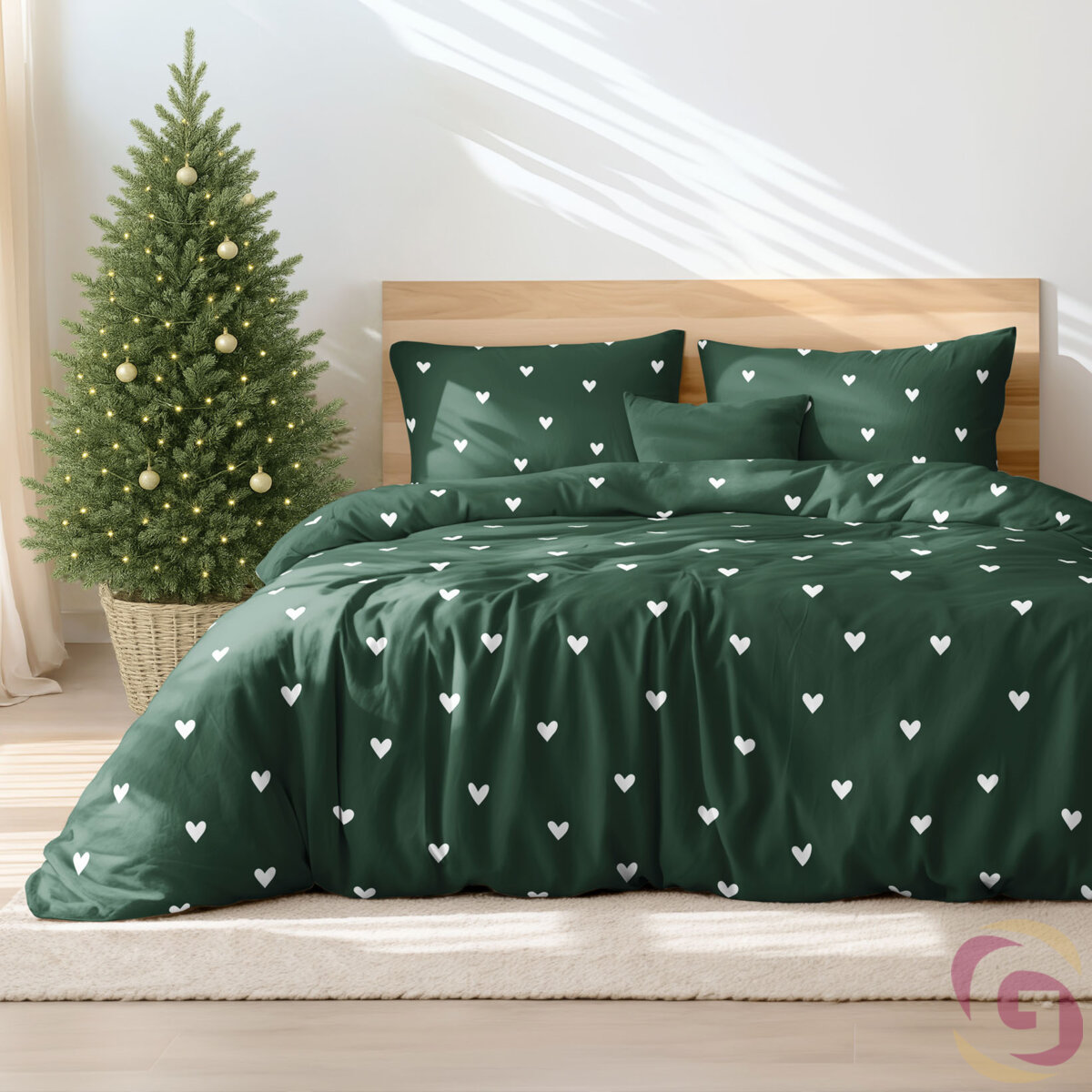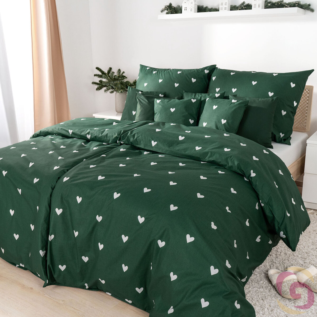 Weihnachtlich Bettwäsche aus Baumwolle - Herzchen auf Dunkelgrün