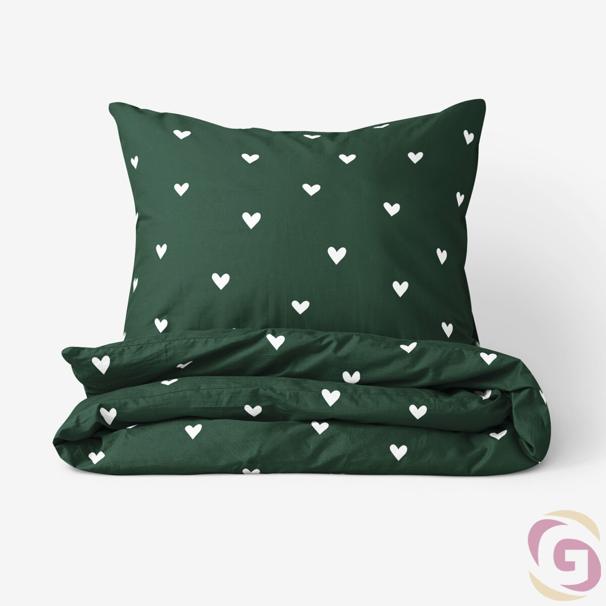 Kinder - Weihnachts-Bettwäsche aus Baumwolle - Herzchen auf Dunkelgrün