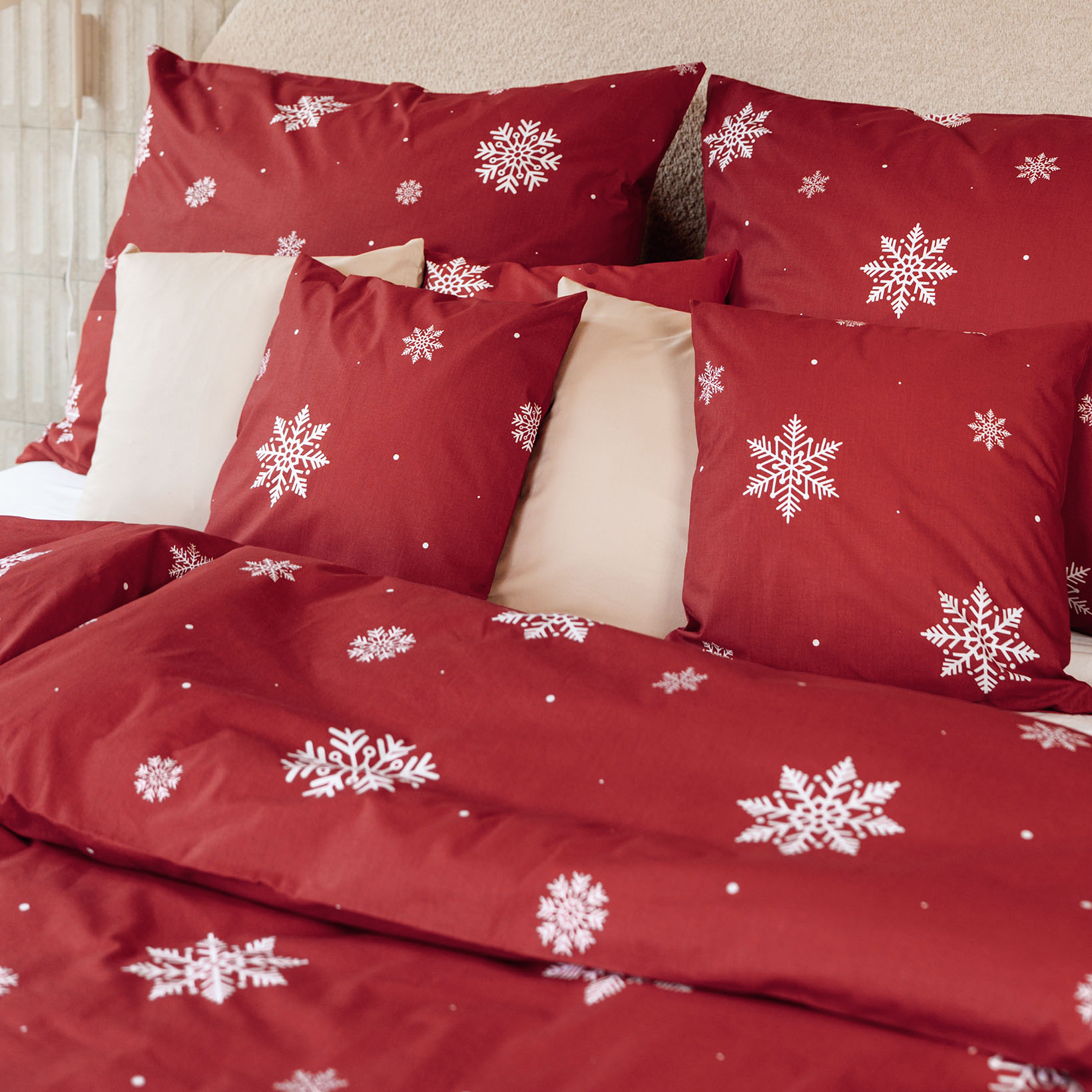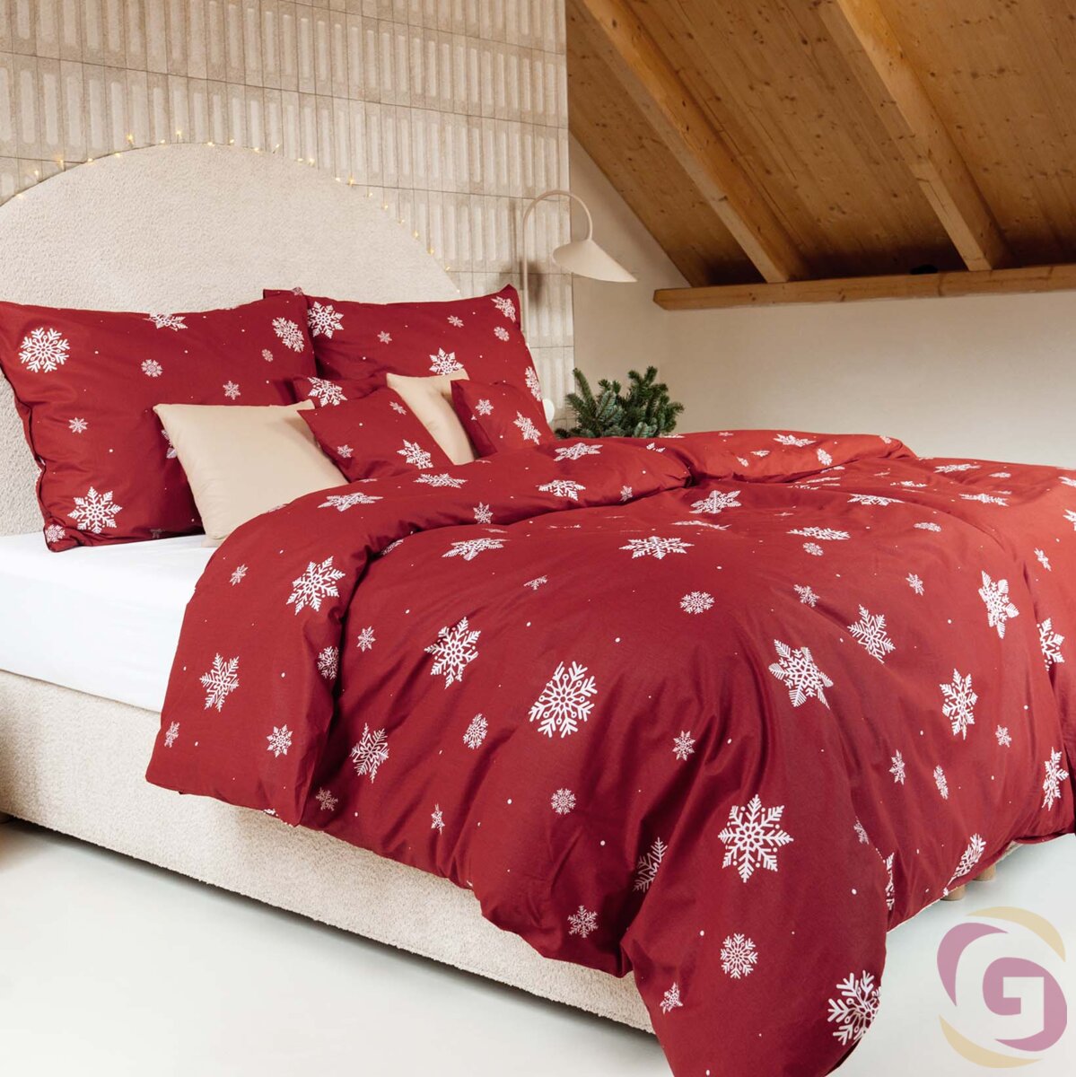 Weihnachtlich Bettwäsche aus Baumwolle - Schneeflocken auf Rot