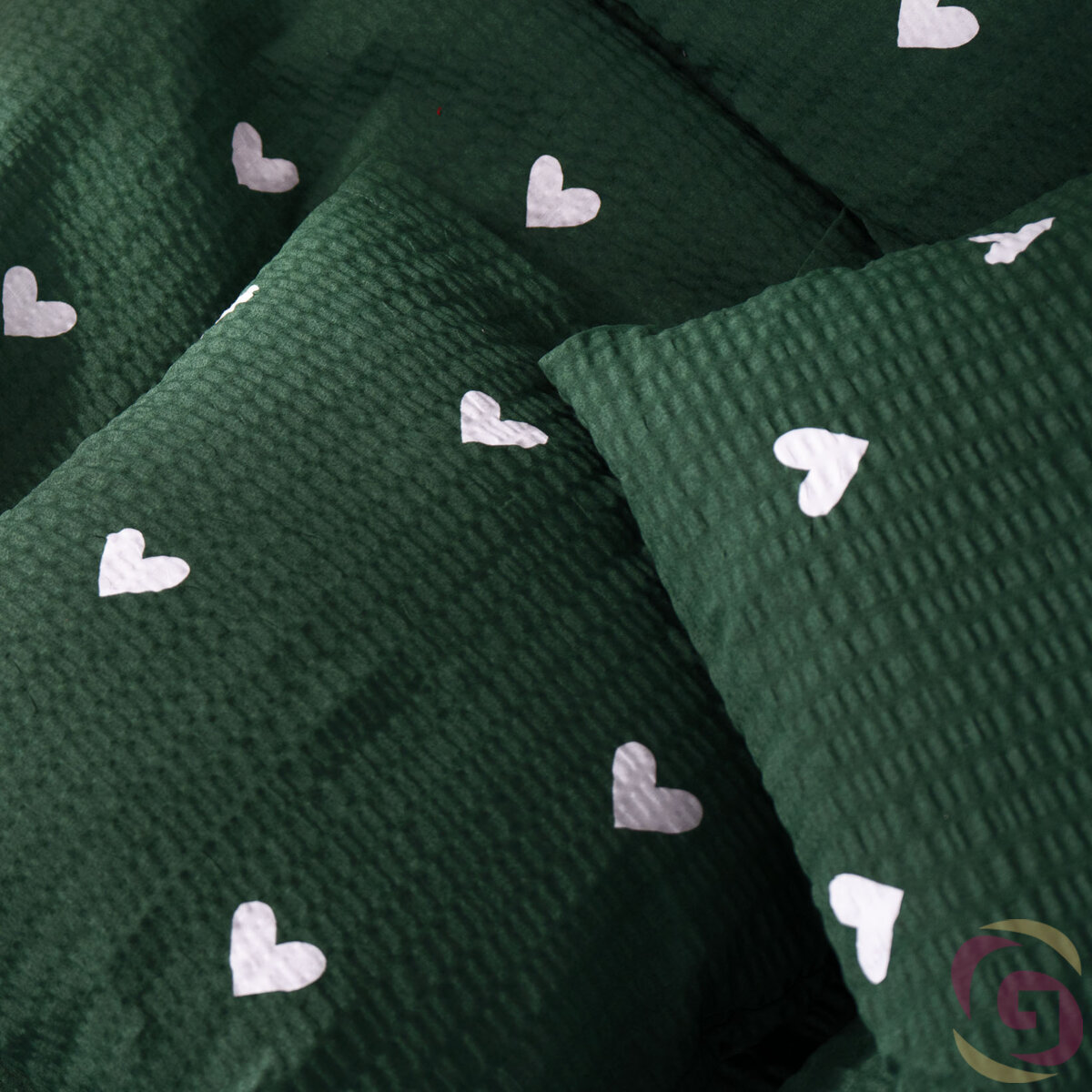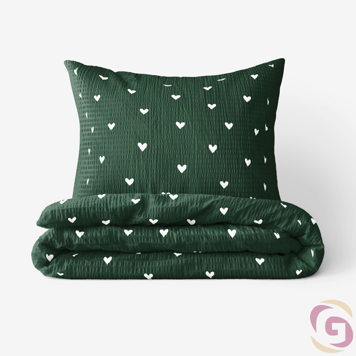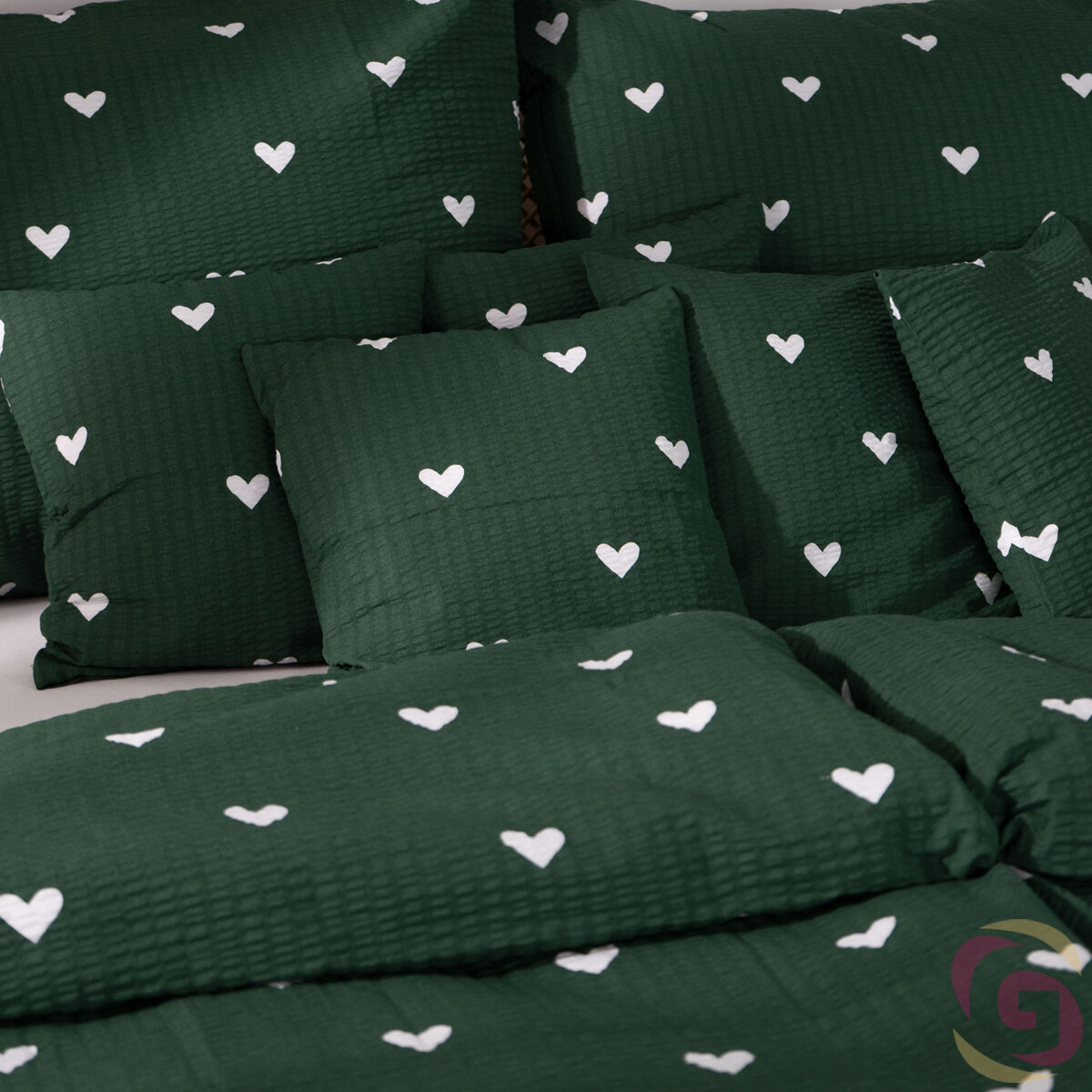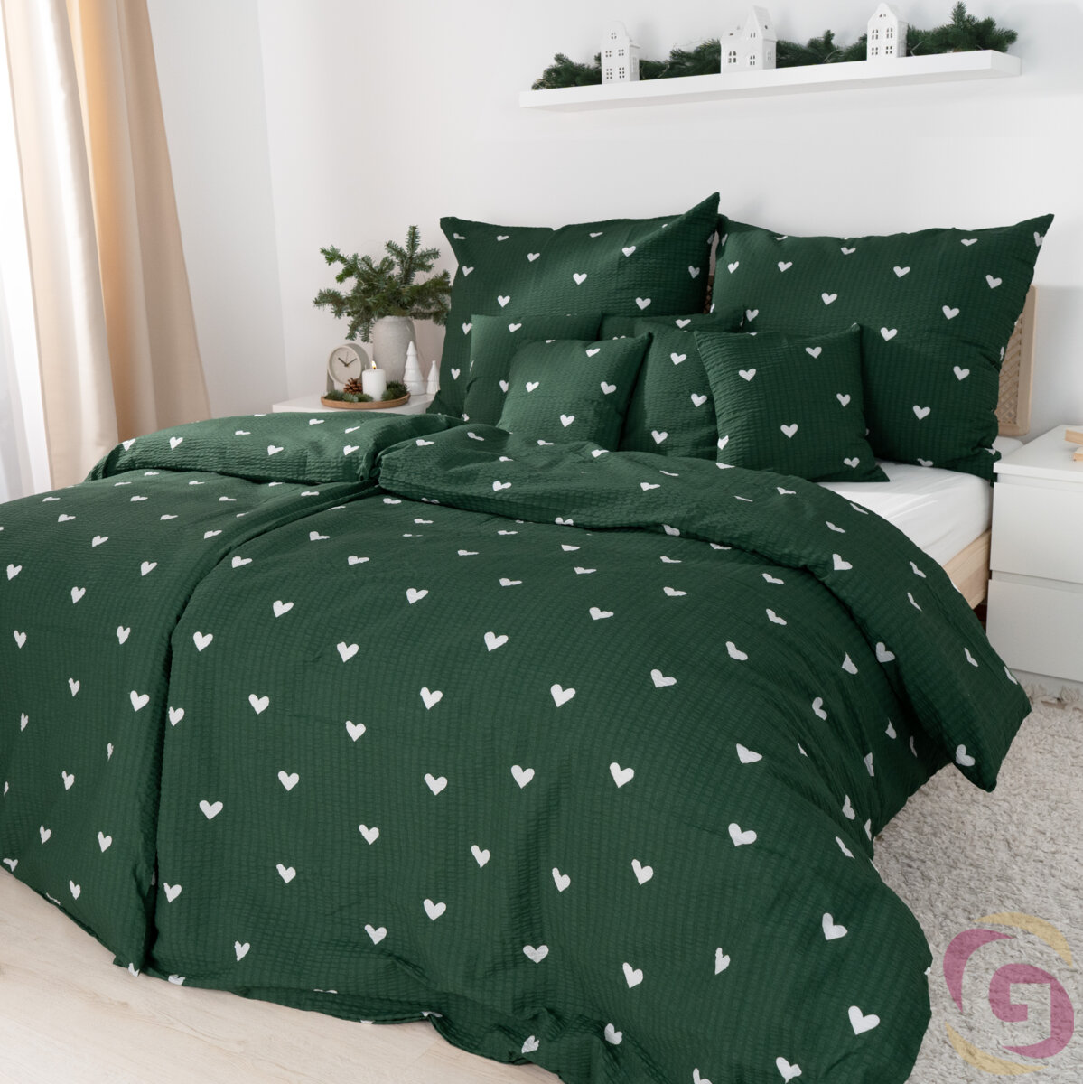 Weihnachtlich Seersucker Bettwäsche - Herzchen auf Dunkelgrün