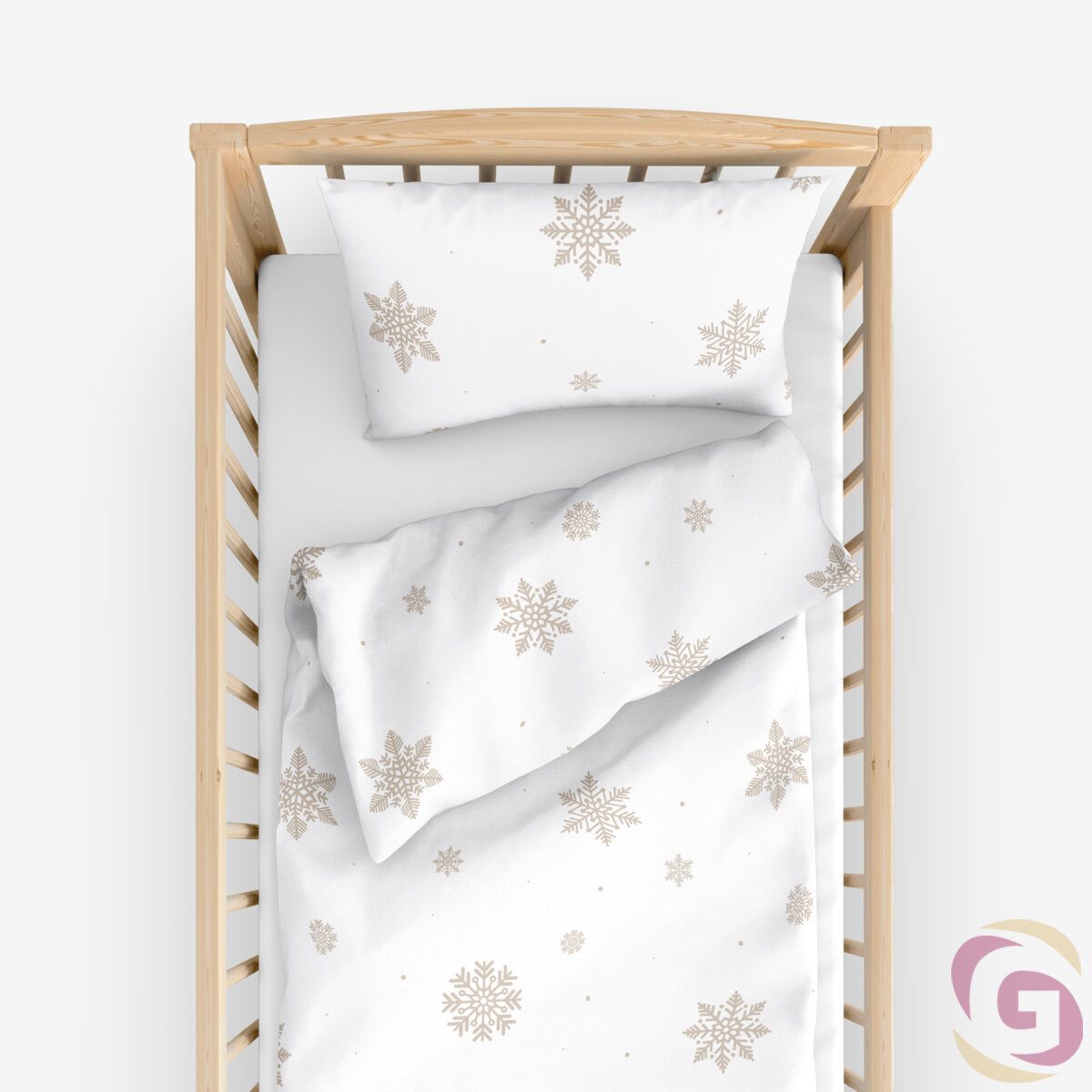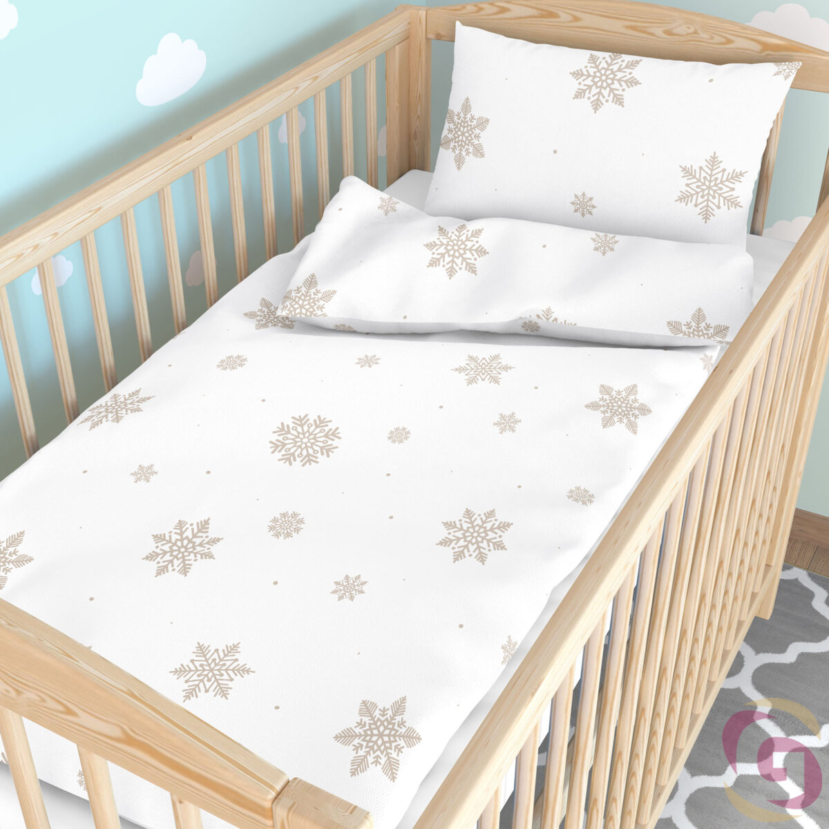 Weihnachtliche Bettwäsche für Babybetten aus Baumwolle - Schneeflocken auf Weiß