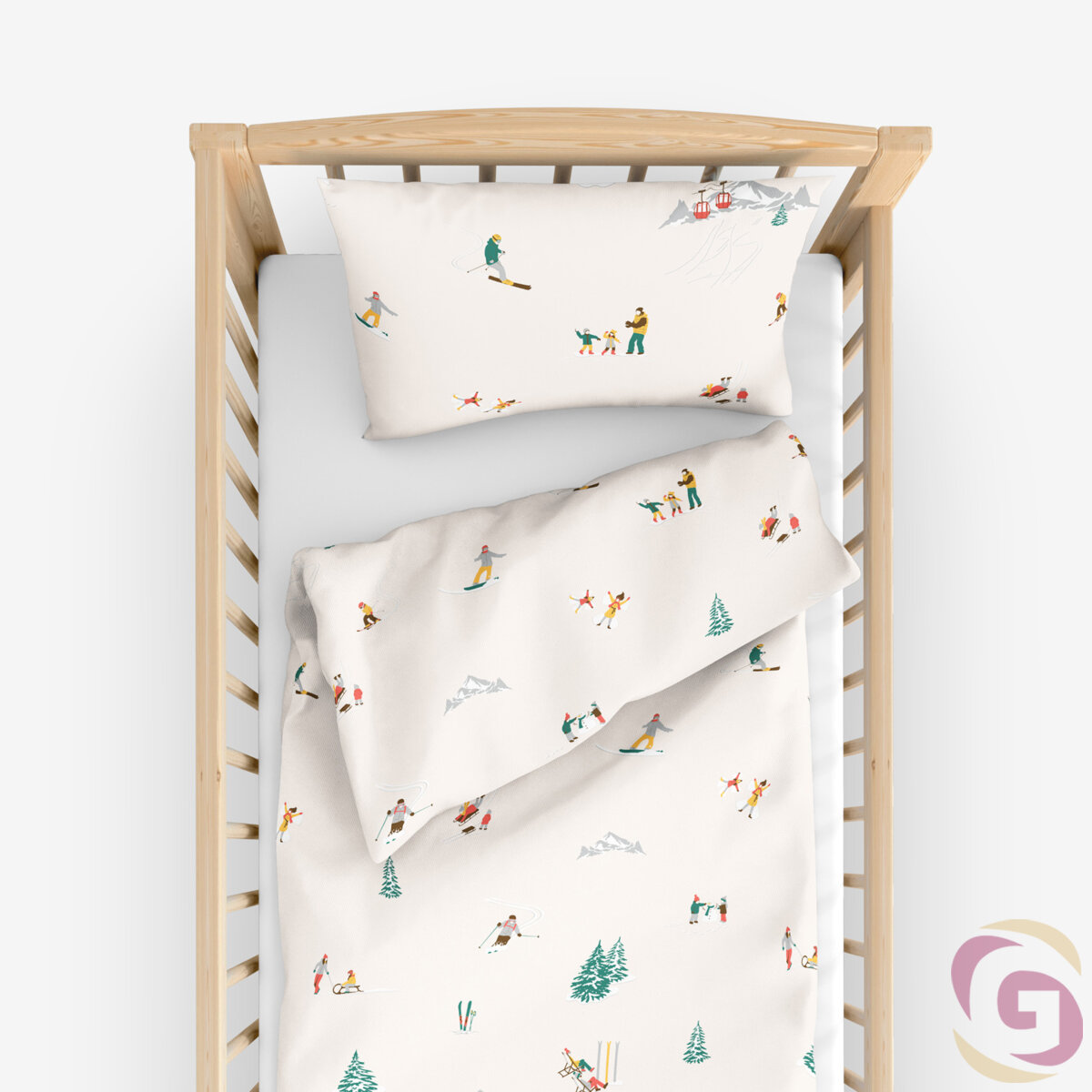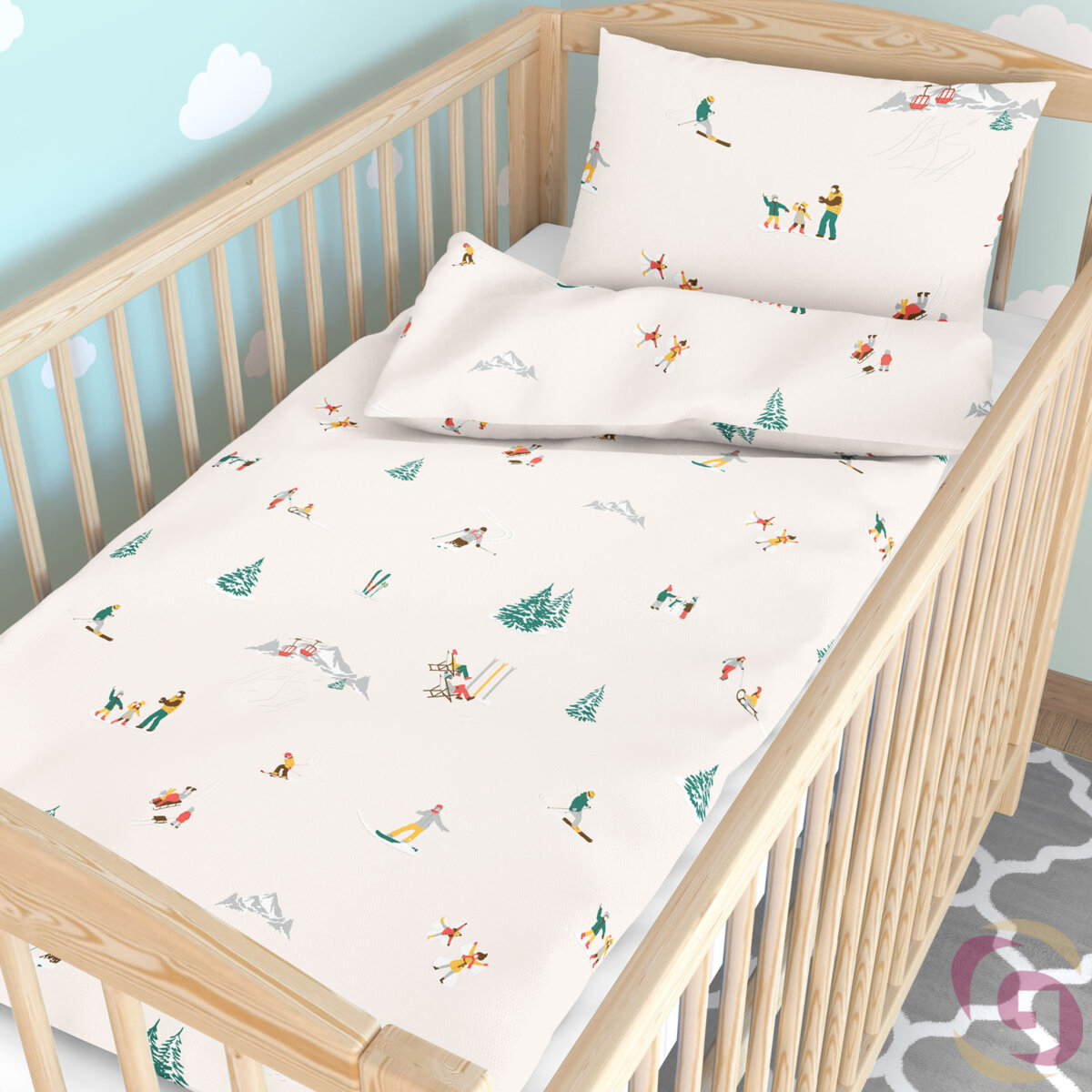 Weihnachtliche Bettwäsche für Babybetten aus Baumwolle - Winterfreuden