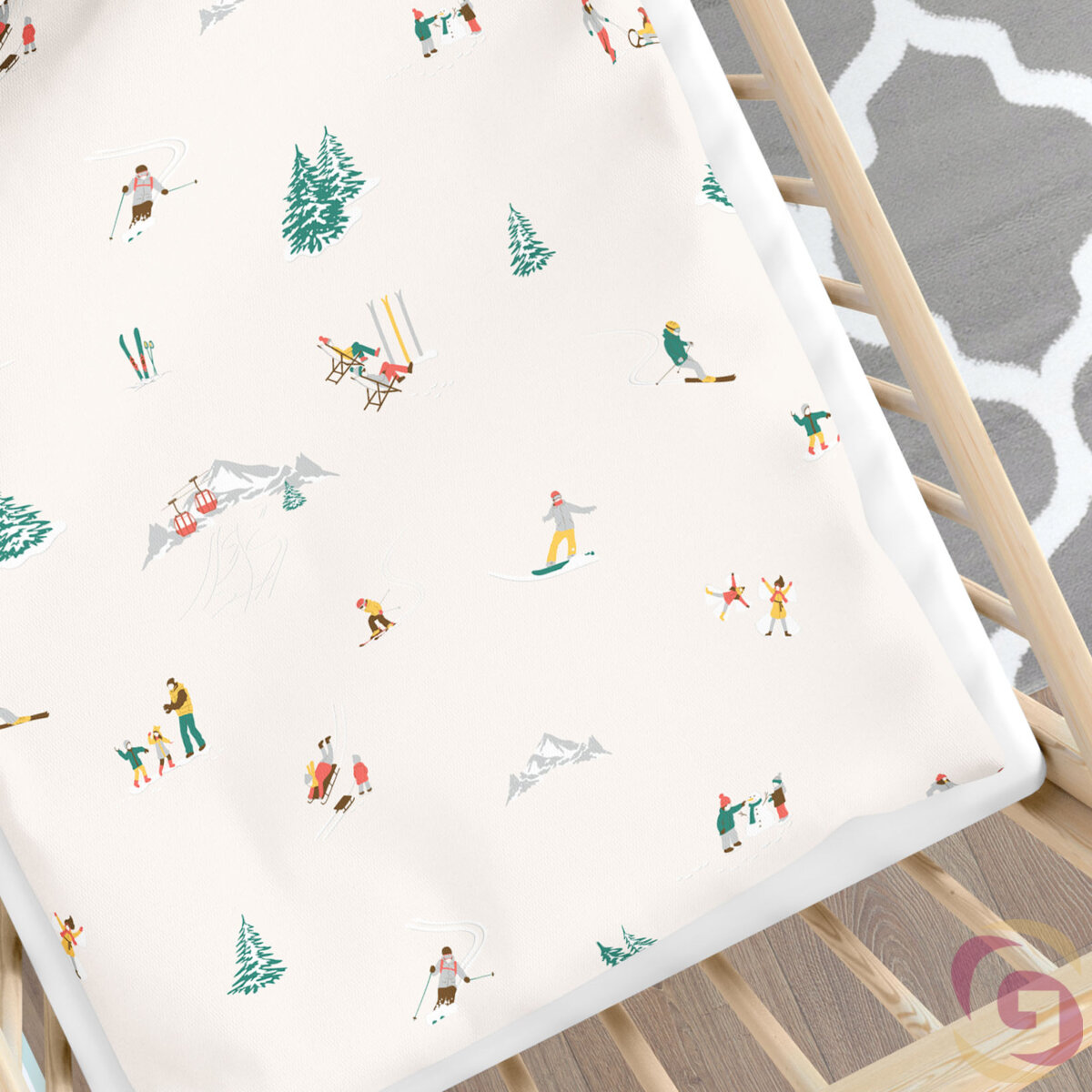 Weihnachtliches Spannbetttuch aus Baumwolle für Babybetten - Winterfreuden