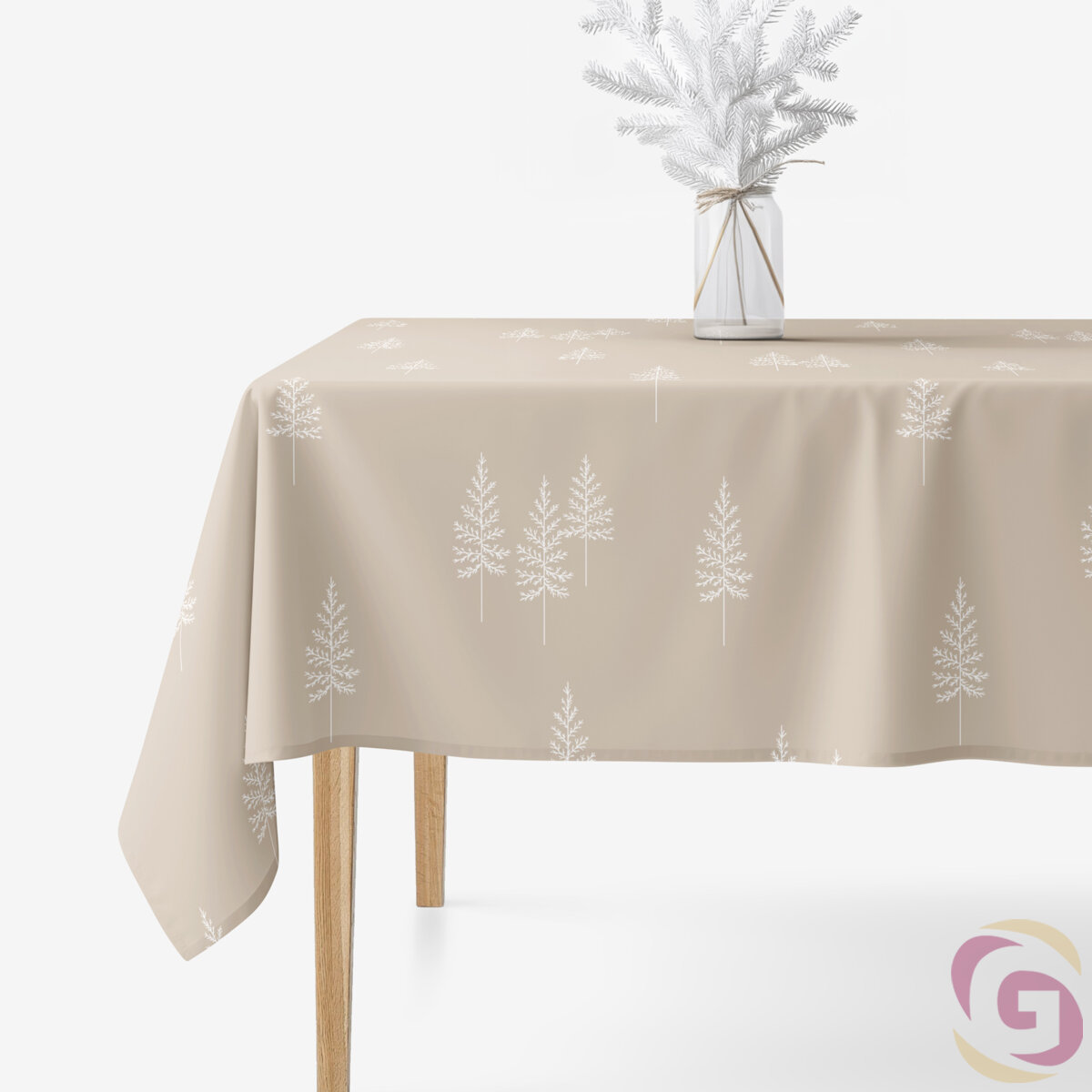 Weihnachtliche eckige Tischdecke 100% Baumwollköper - Nordische Tannenbäume