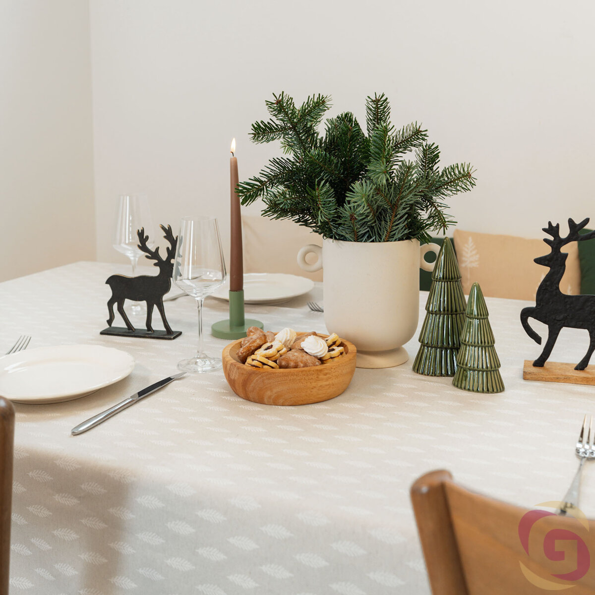 Dekoratives Tischdecke mit feinen Ästchen auf Leinenuntergrund bringt eine warme Atmosphäre und den Zauber der Winterlandschaft in Ihr Zuhause. Das feine Ästchenmotiv ergänzt sowohl rustikale als auch moderne Einrichtungen perfekt. Gönnen Sie sich erstklassige Qualität, die großartig aussieht, jahrelang hält und jedes Essen zu einem besonderen Moment macht. Verleihen Sie Ihrem Zuhause den letzten Schliff.