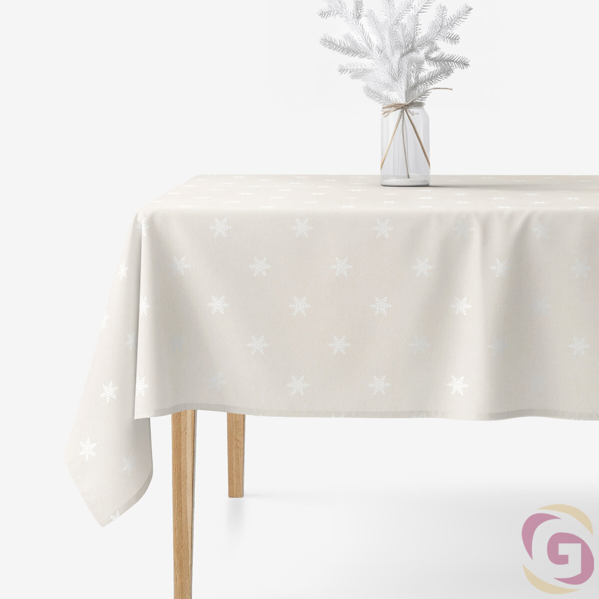 Weihnachtliche eckige Tischdecke Natura - Schneeflocken auf natürlichem