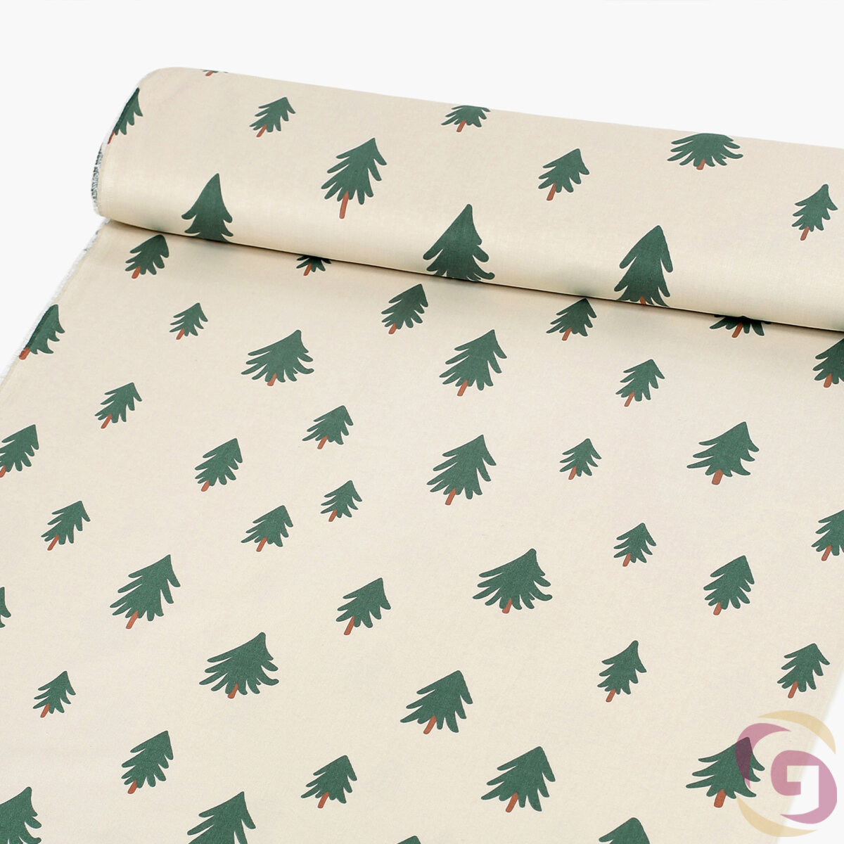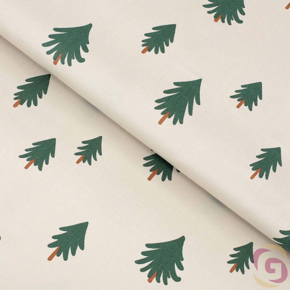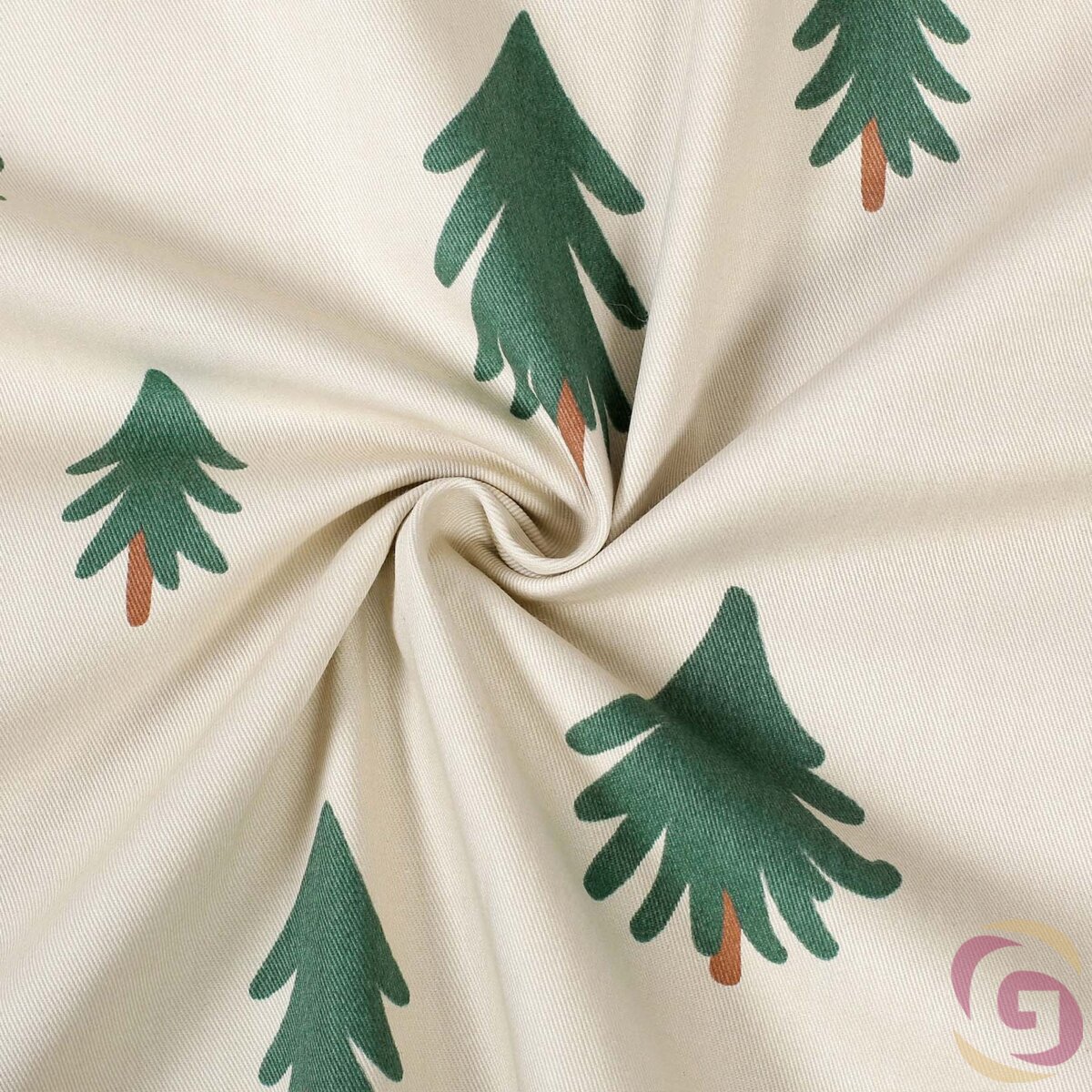 Weihnachten Baumwollköper mit Motiv Bäumchen. Die Breite des Stoffes beträgt 160 cm und die Hintergrundfarbe ist natur. Der Köperstoff ist aus fester 100% Baumwolle mit einem Gewicht von 190 g/m2 hergestellt. Der Köperstoff ist als Meterware angeboten, die Mindestabnahme beträgt 0,5 m. Wir bieten auch genähte Produkte aus Baumwollköper mit Motiv Bäumchen.