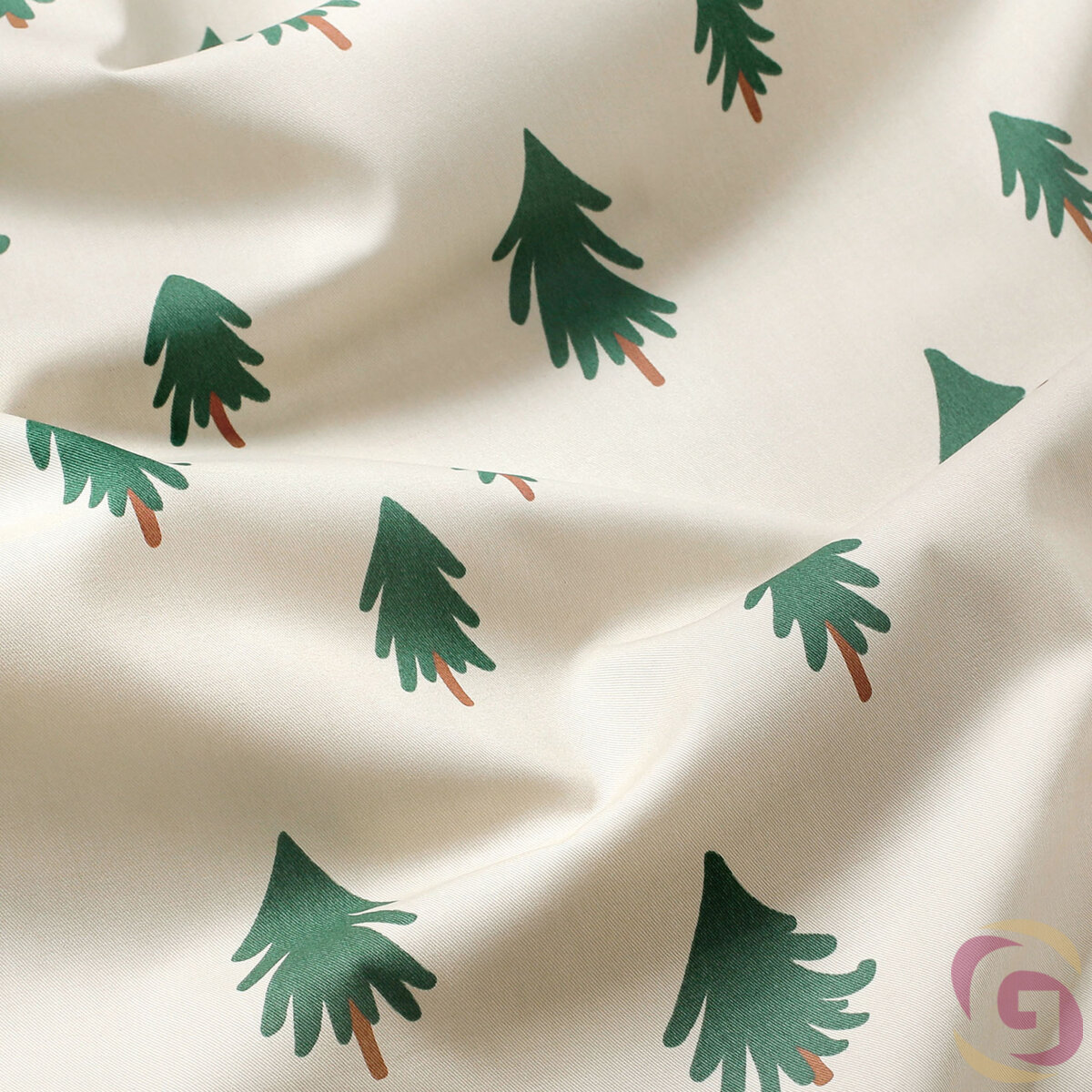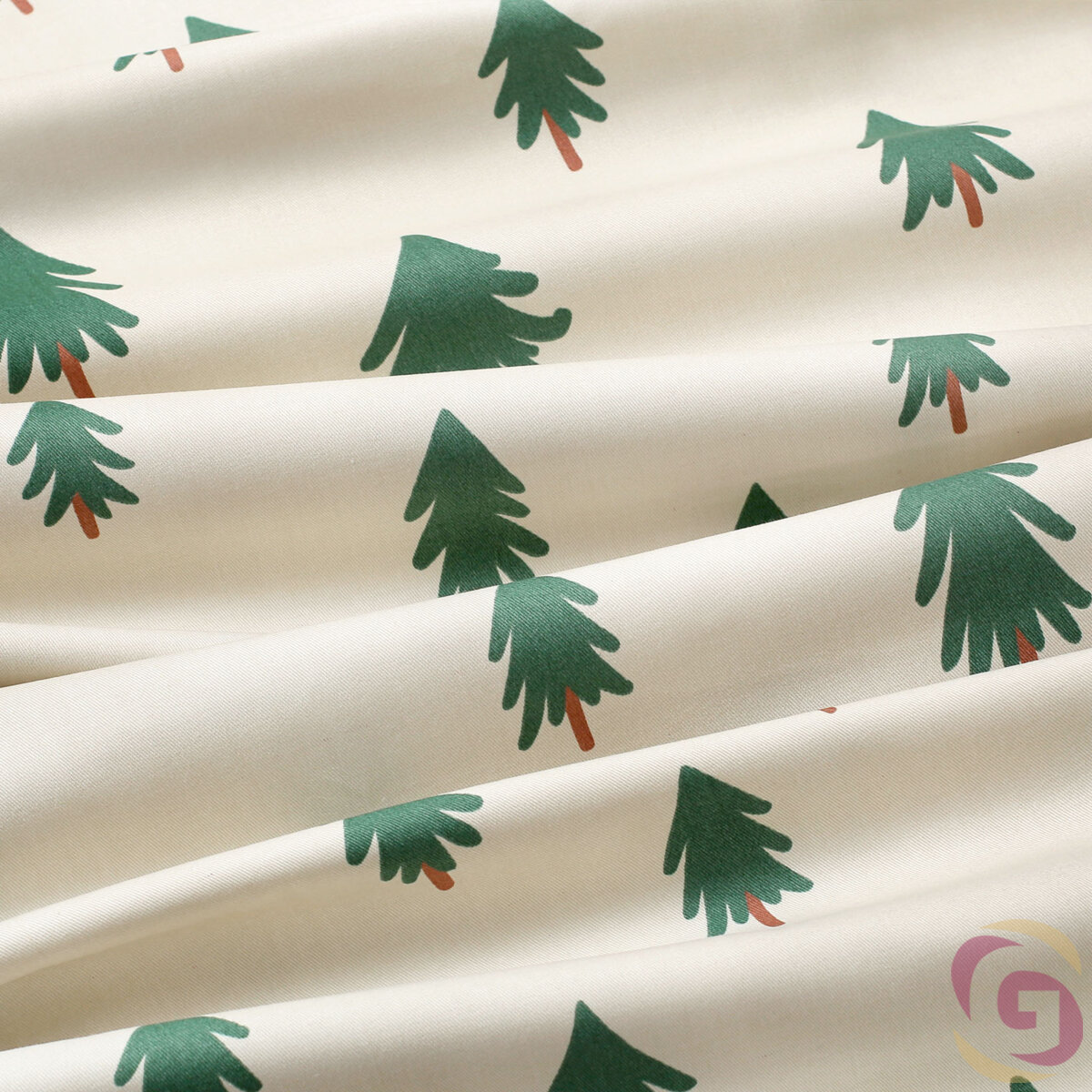 Weihnachtlich Bettwäsche aus Baumwolle Duo - Bäume auf natur mit dunkelgrün