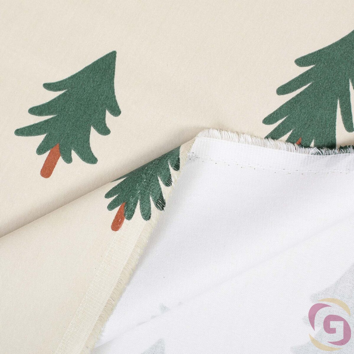 Weihnachtlicher Vorhang aus Baumwolle - Bäumchen auf natur