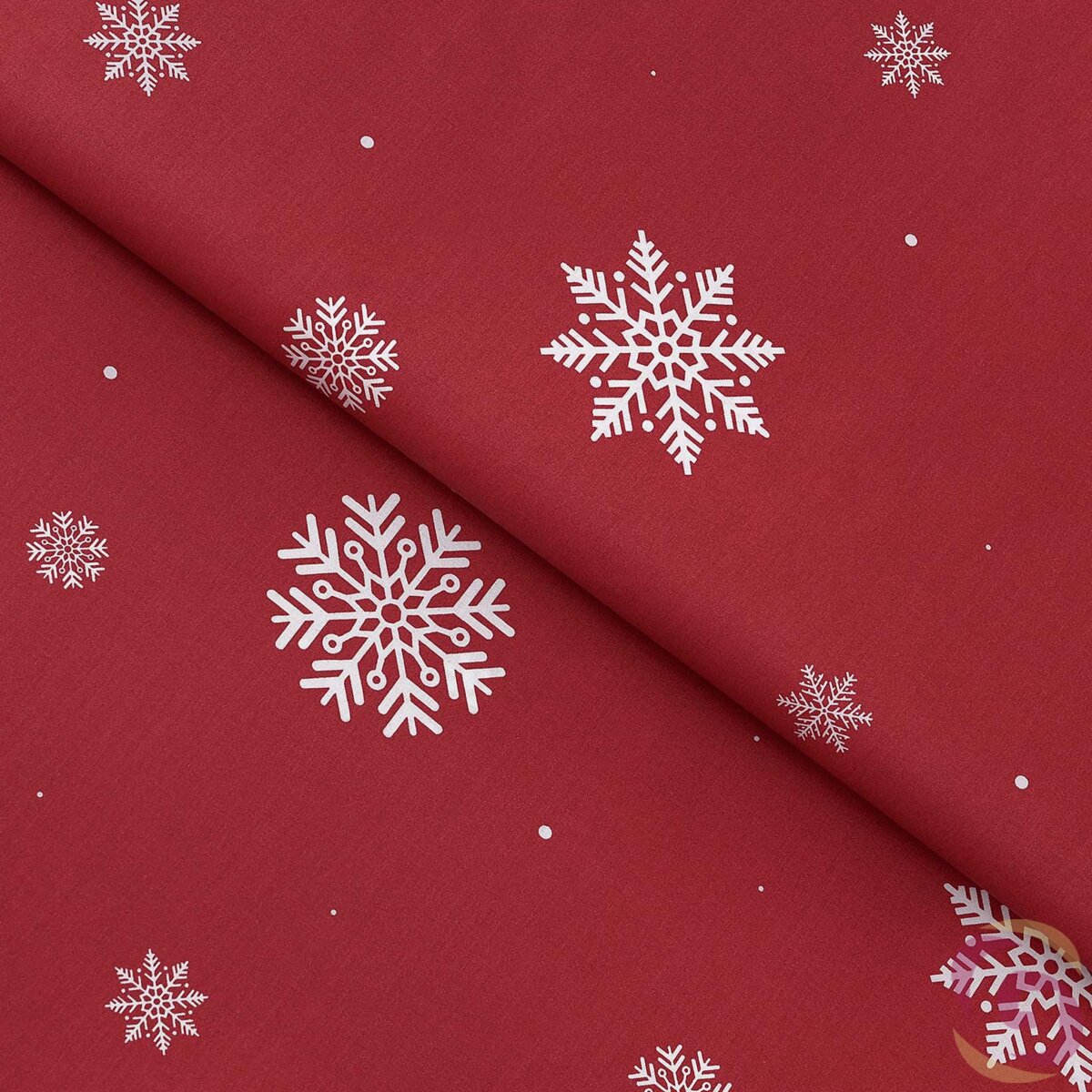 Eckige weihnachtliche Tischdecke 100% Baumwolle - Schneeflocken auf Rot