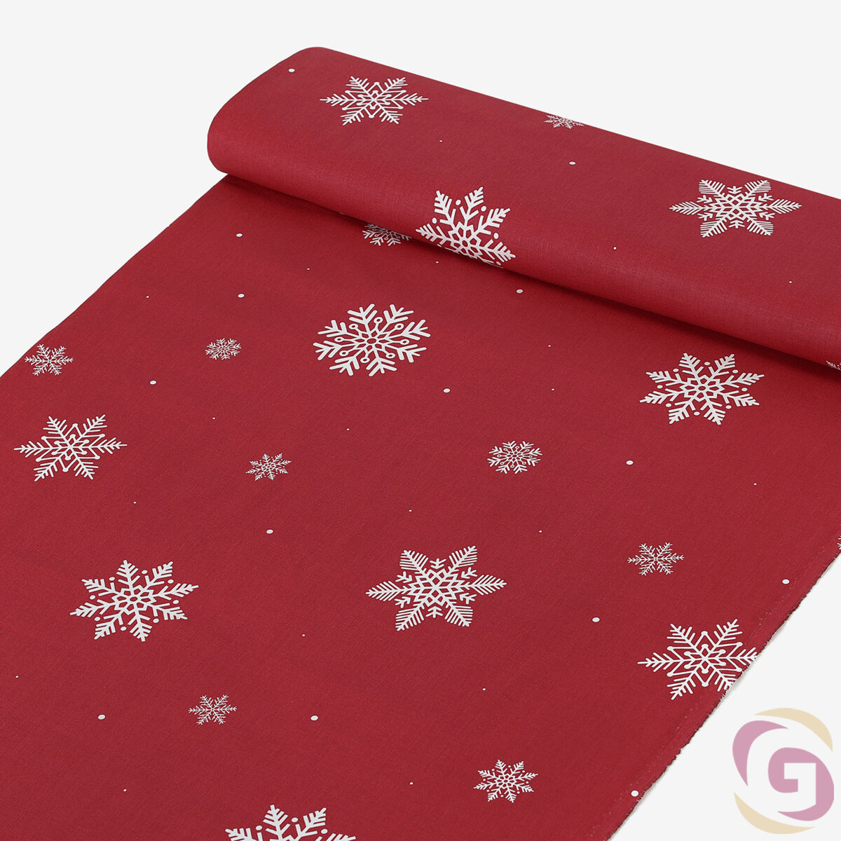 Weihnachtlicher Tischläufer aus 100% Baumwolle - Schneeflocken auf Rot