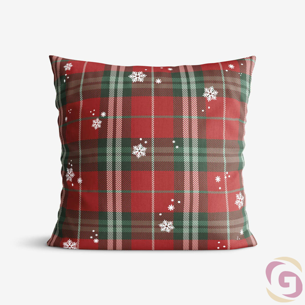 Weihnachtlicher Dekorativer Kissenbezug - Rotkariert mit Schneeflocken