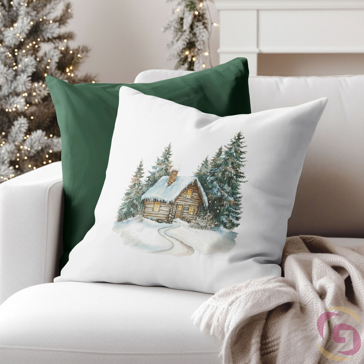 Weihnachtlicher dekorativer Kissenbezug - Winterhäuschen
