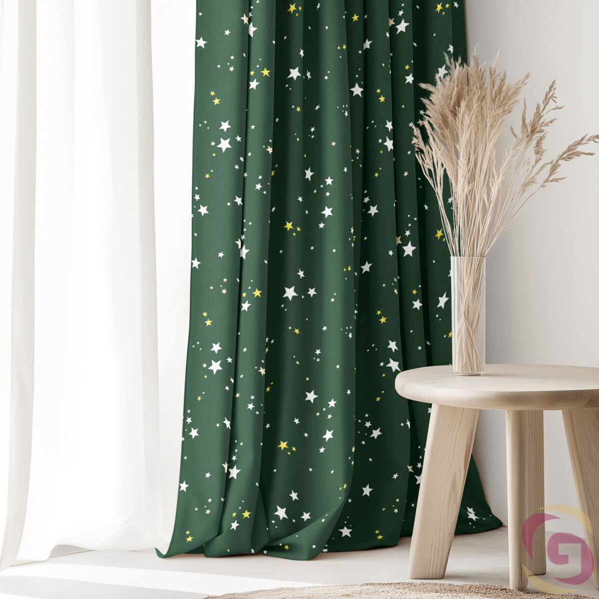 Weihnachtlicher Dekorativer Vorhang – Sterne auf Grün