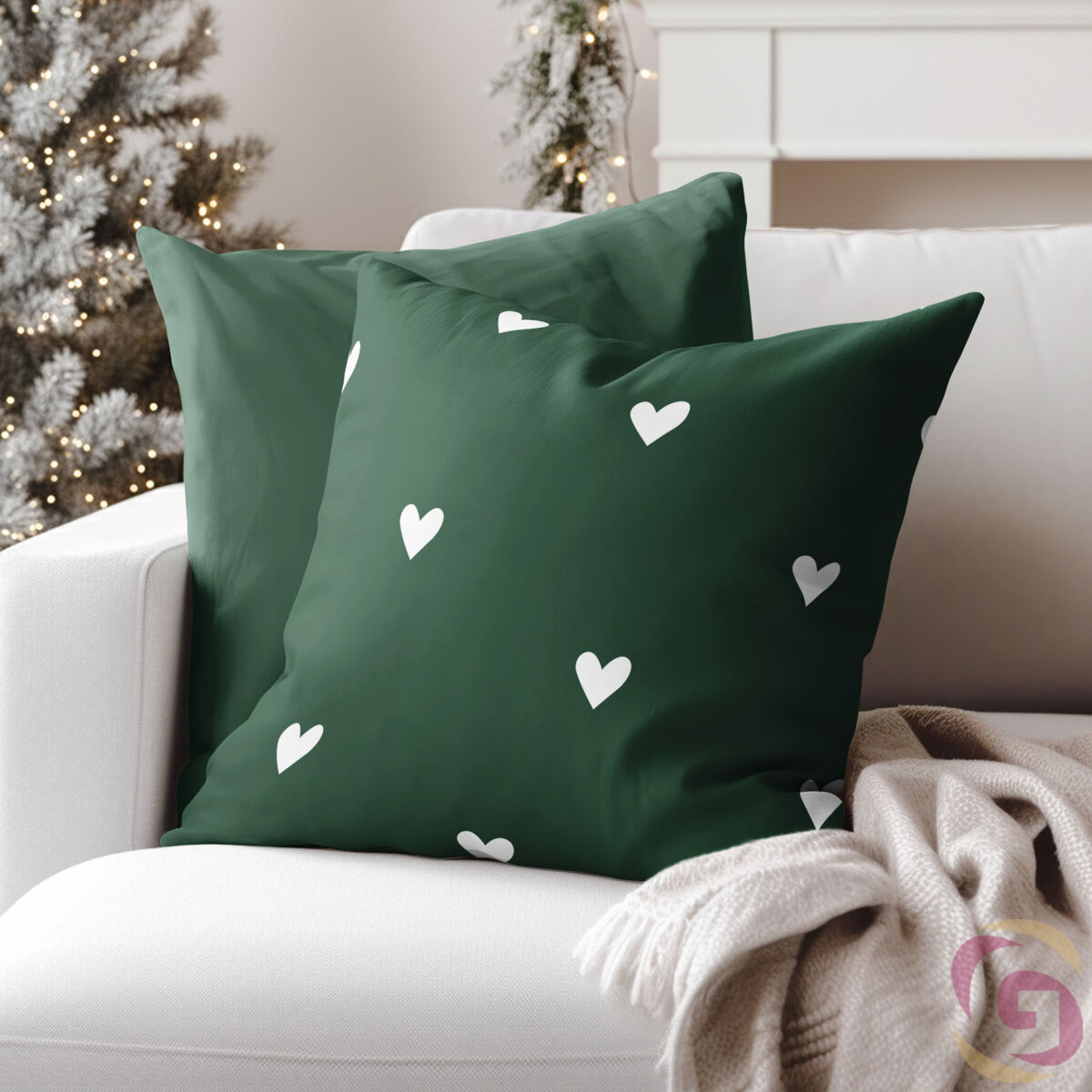 Weihnachtlicher Kissenbezug aus Baumwolle - Herzchen auf Dunkelgrün