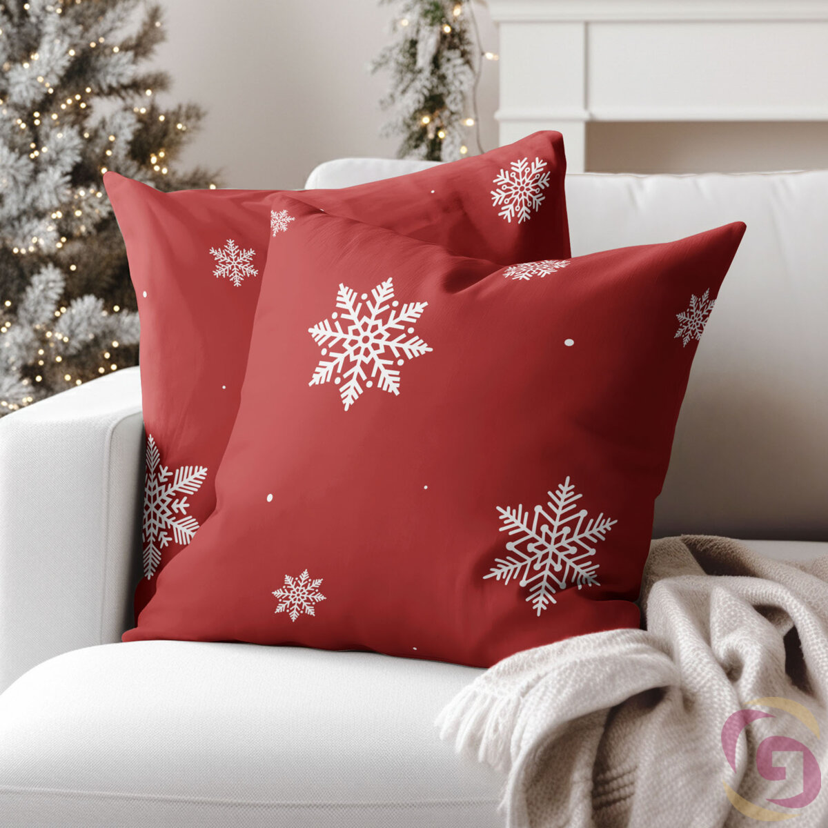Eleganter roter Weihnachtskissenbezug mit Schneeflockenmotiv, der Ihrem Schlafzimmer einen Hauch von Luxus und festlicher Atmosphäre verleiht. Mit seinem zeitlosen Design ist er die ideale Wahl für die Weihnachtszeit voller Ruhe, Wärme und Gemütlichkeit.