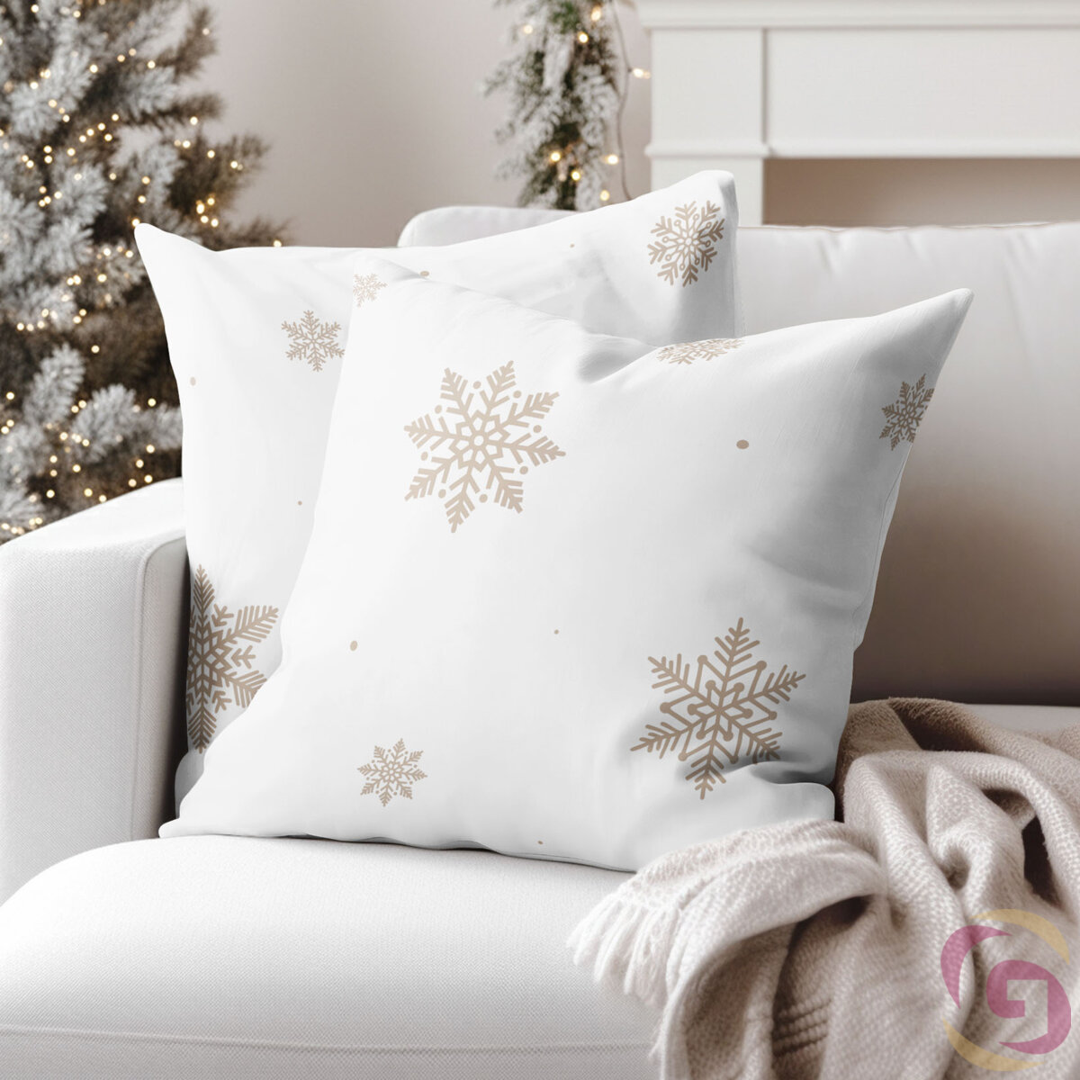 Weihnachtlicher Kissenbezug aus Baumwolle - Schneeflocken auf Weiß