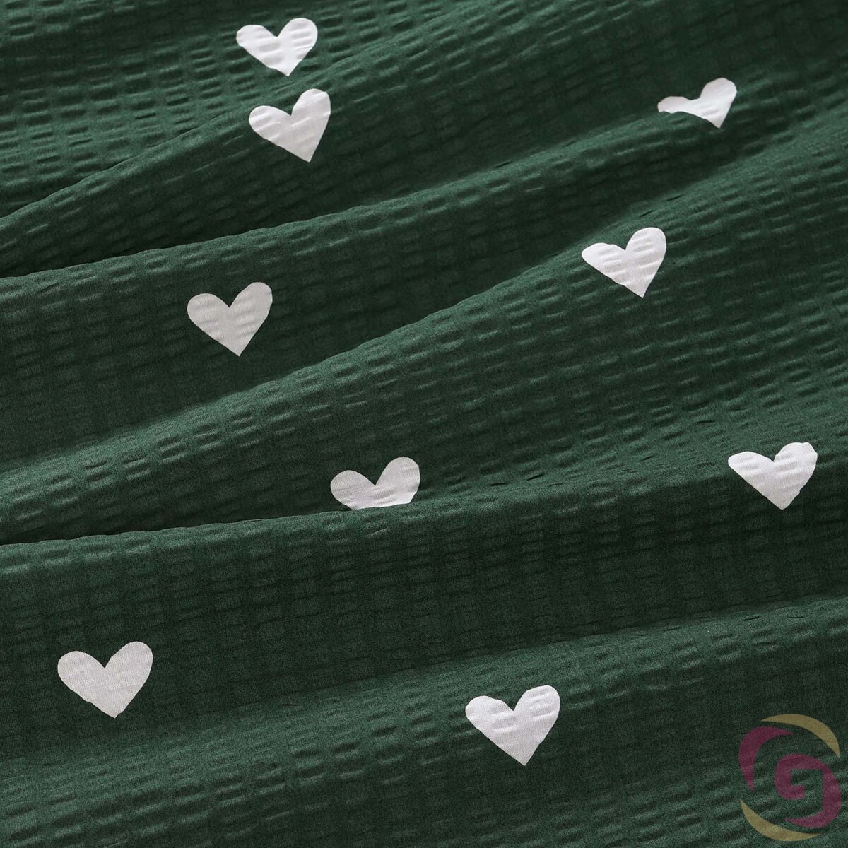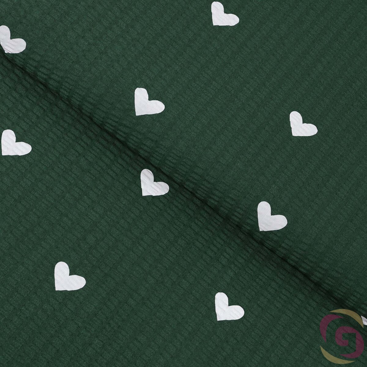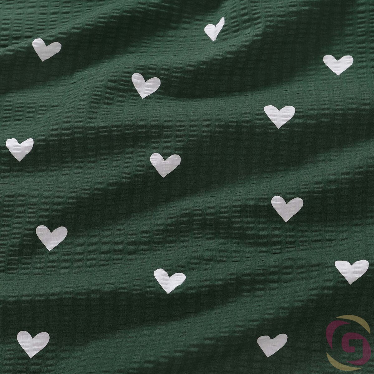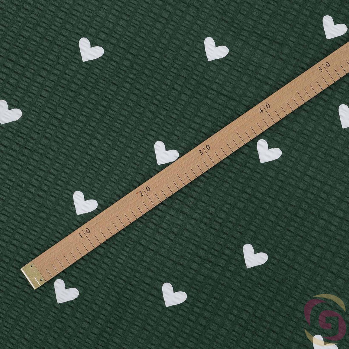 Weihnachtlicher Seersucker - Herzchen auf Dunkelgrün