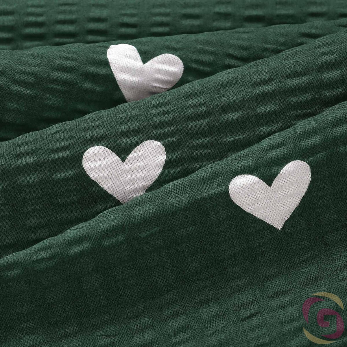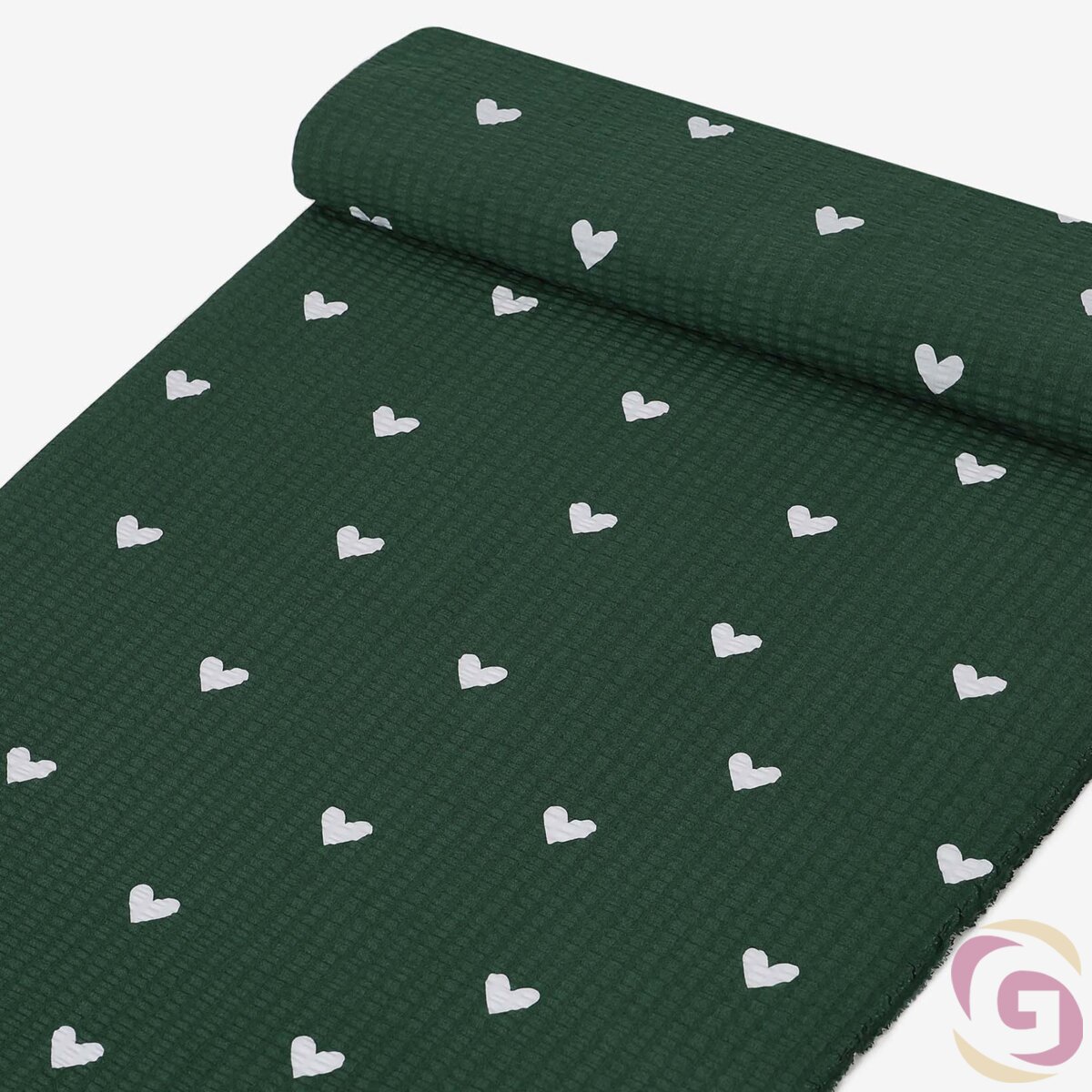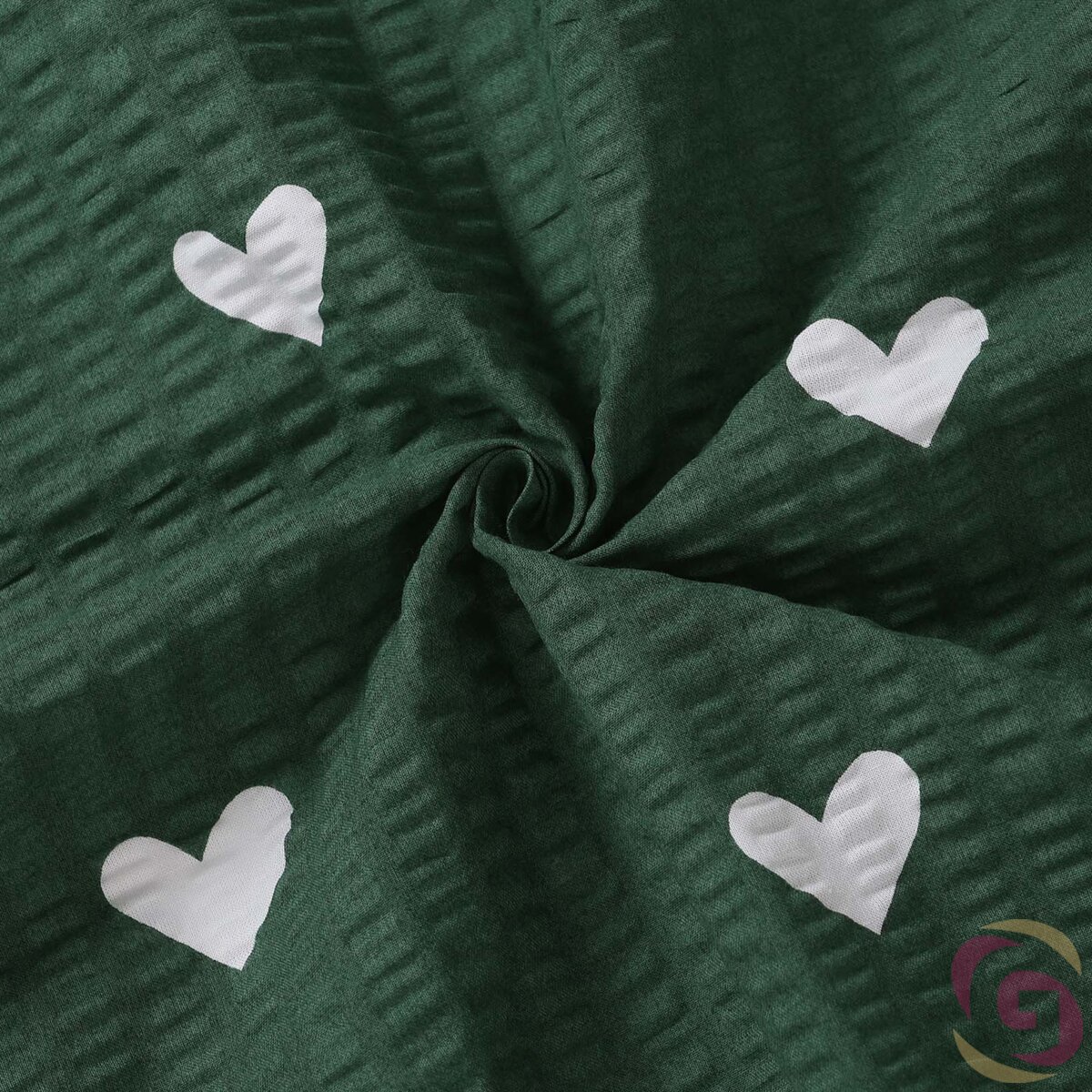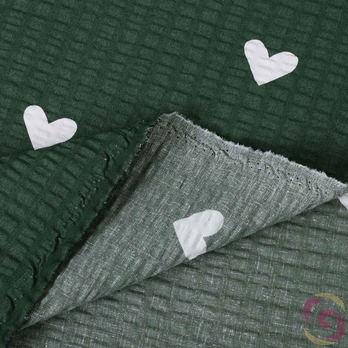 Weihnachtlicher Seersucker - Herzchen auf Dunkelgrün