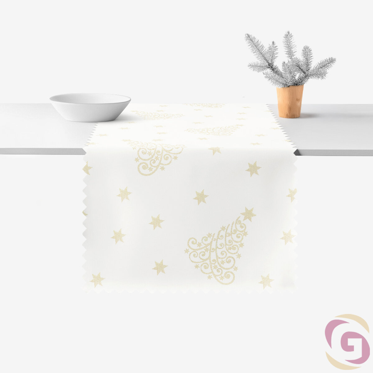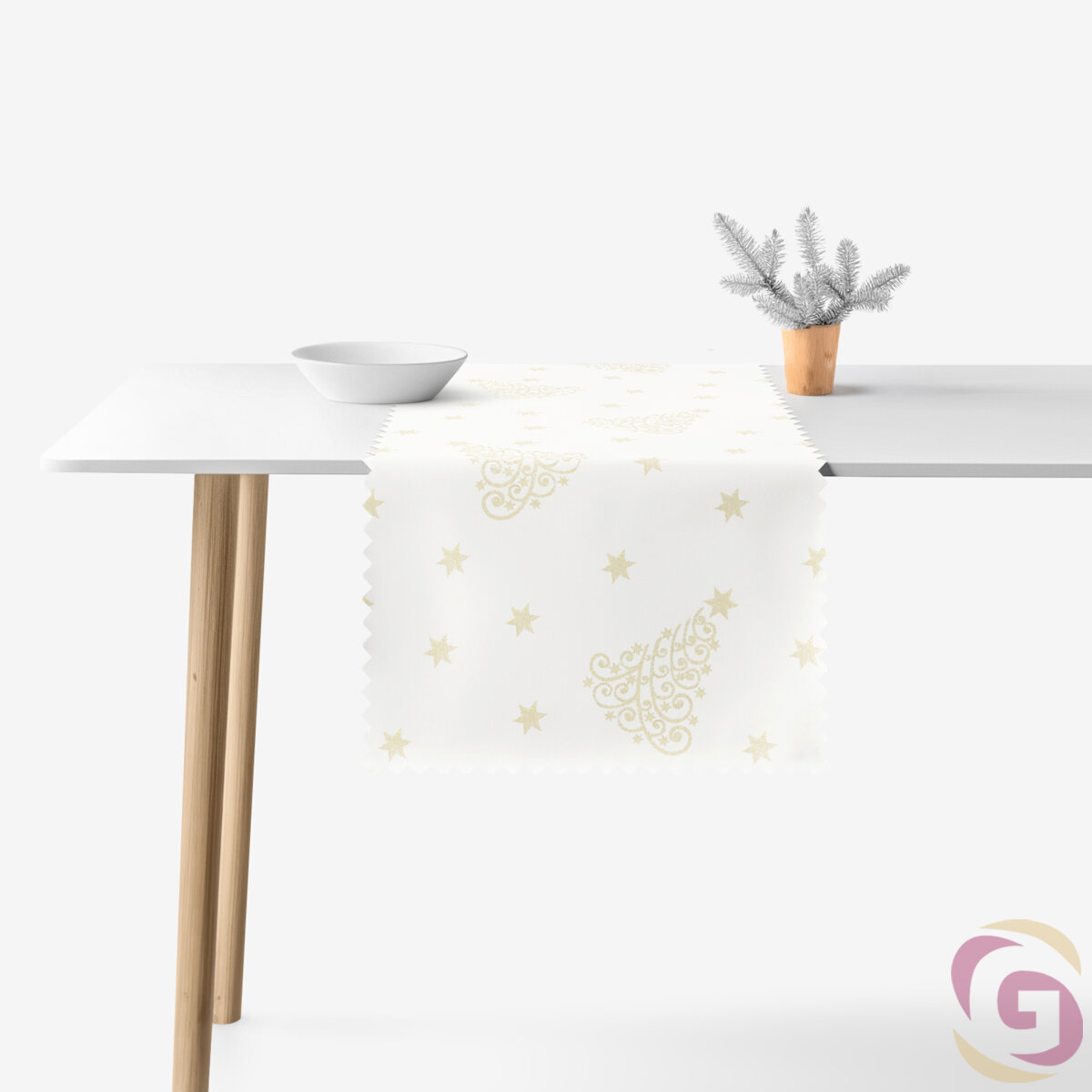 Weihnachtlicher Teflon-Tischläufer - Goldene Tannenbäume und Sterne