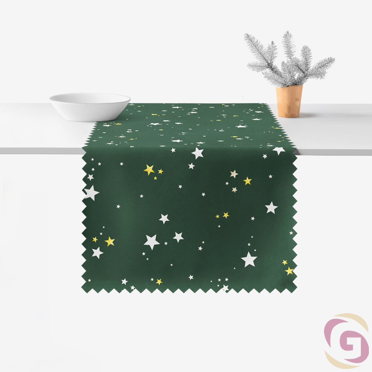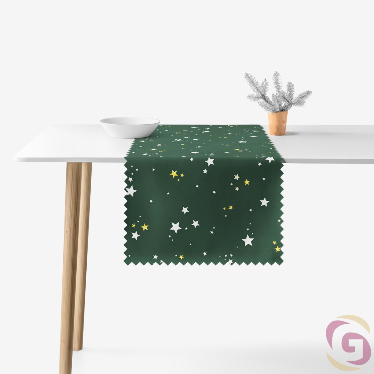 Weihnachtlicher Teflon-Tischläufer - Sterne auf Grün