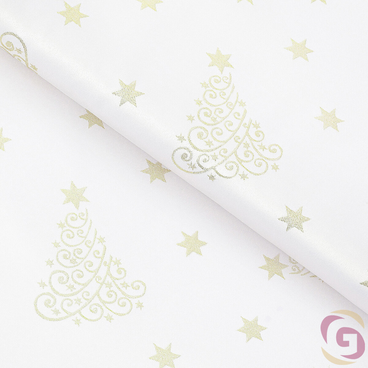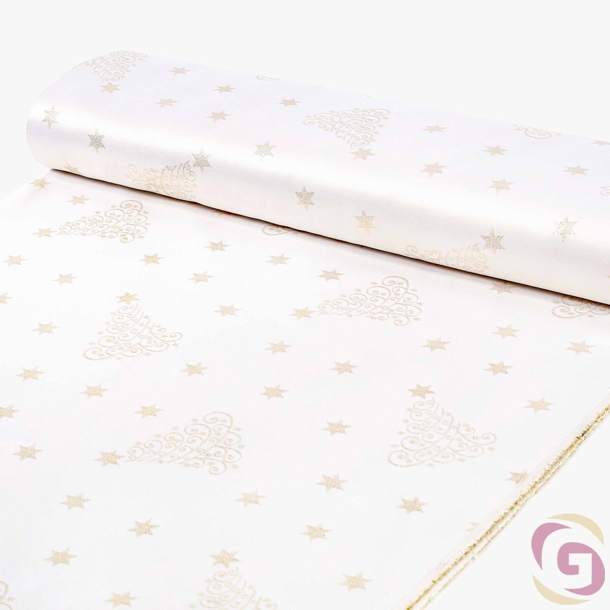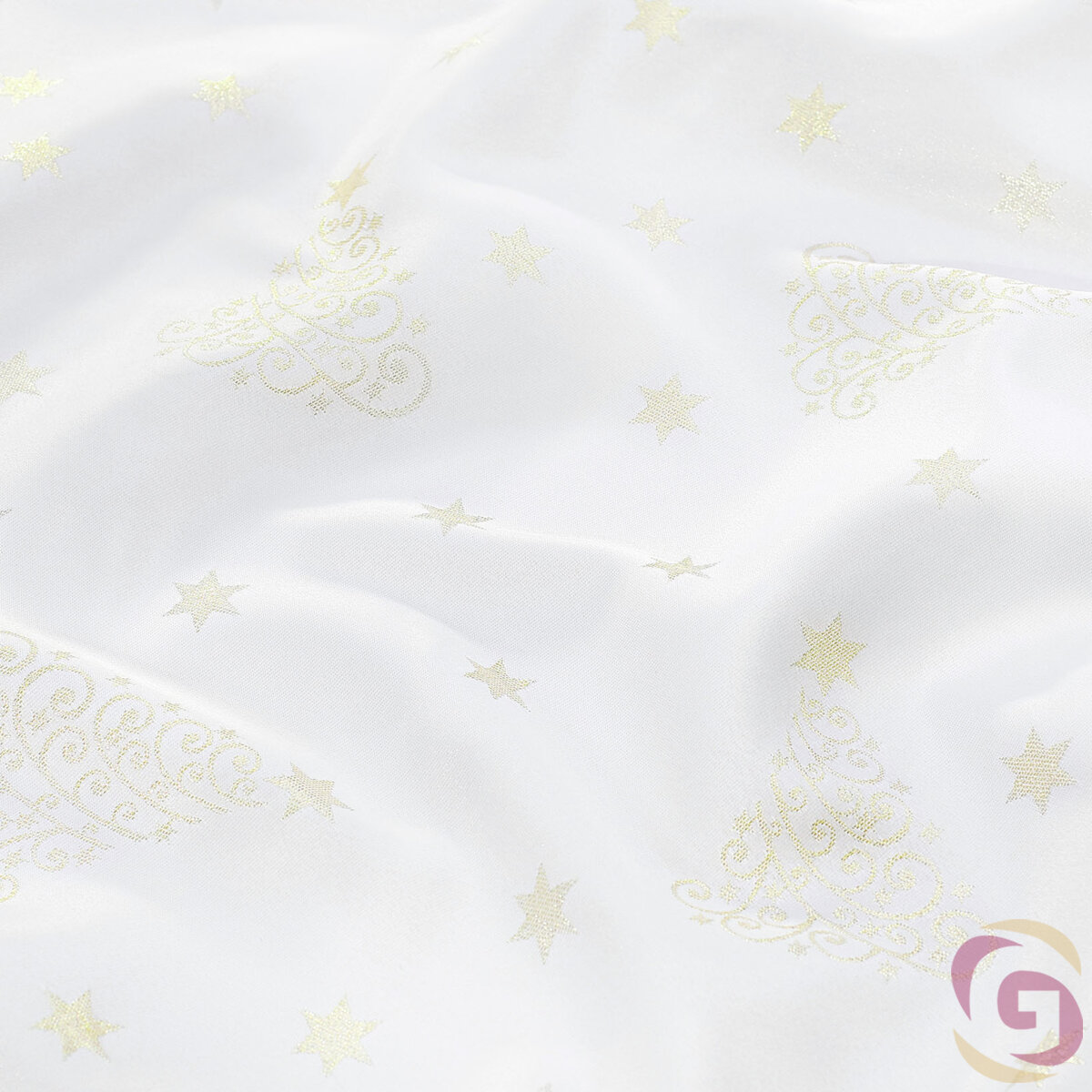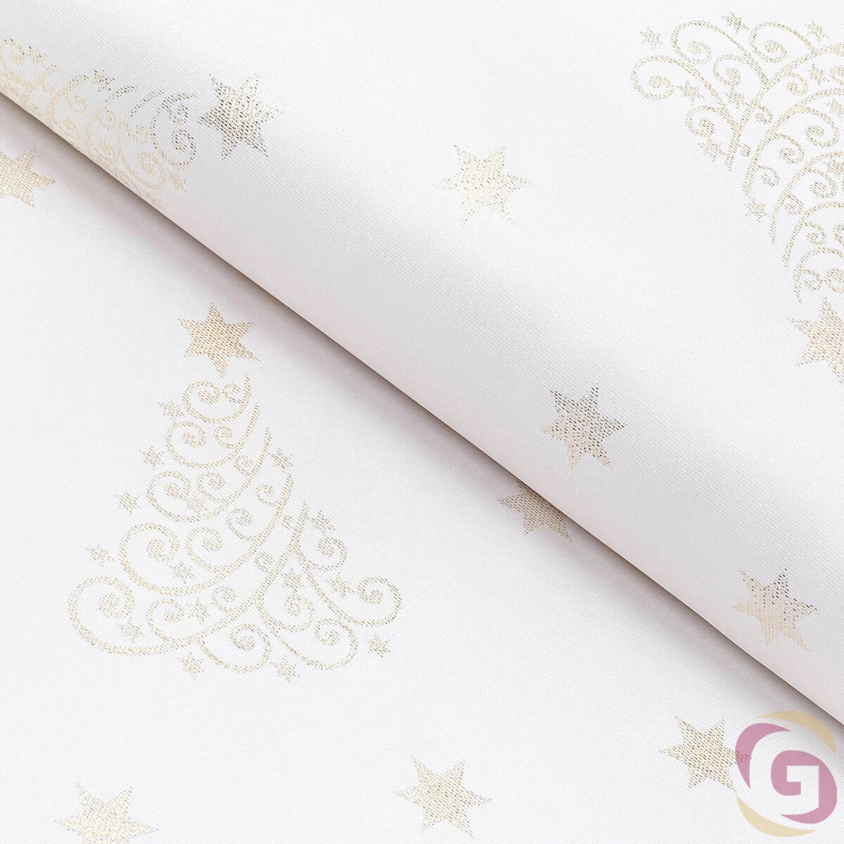 Weihnachtlicher Teflonstoff für Tischdecken – Goldene Tannenbäume und Sterne