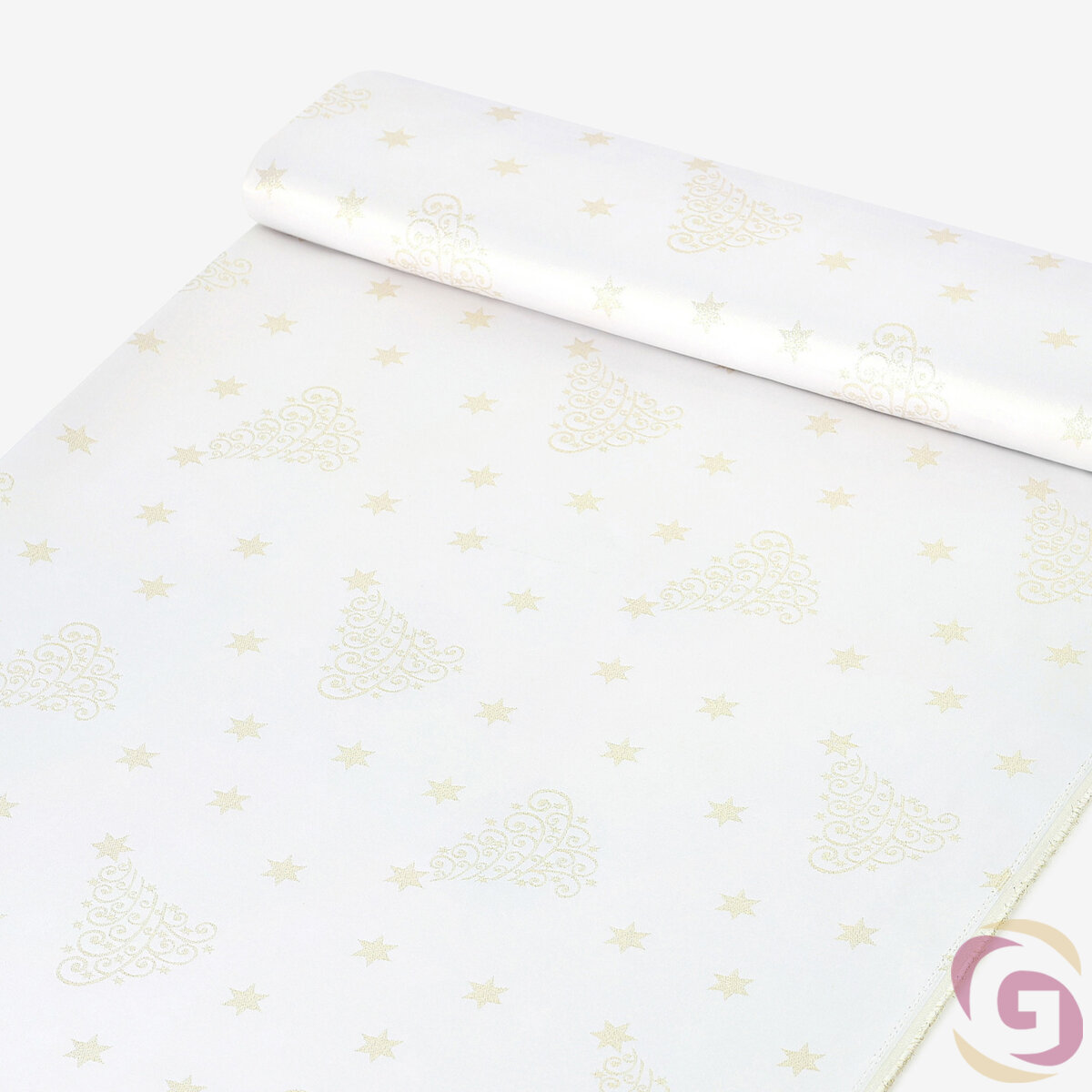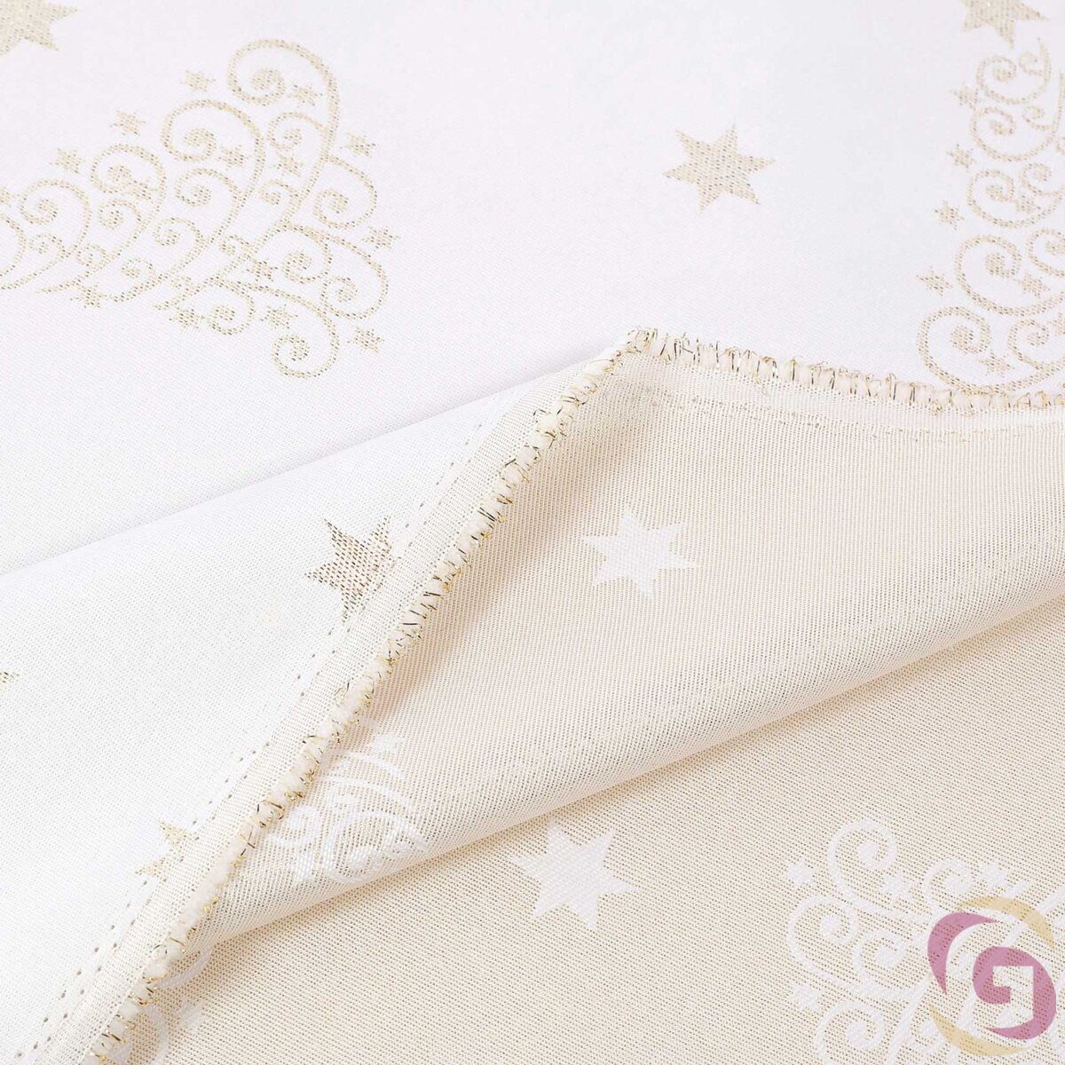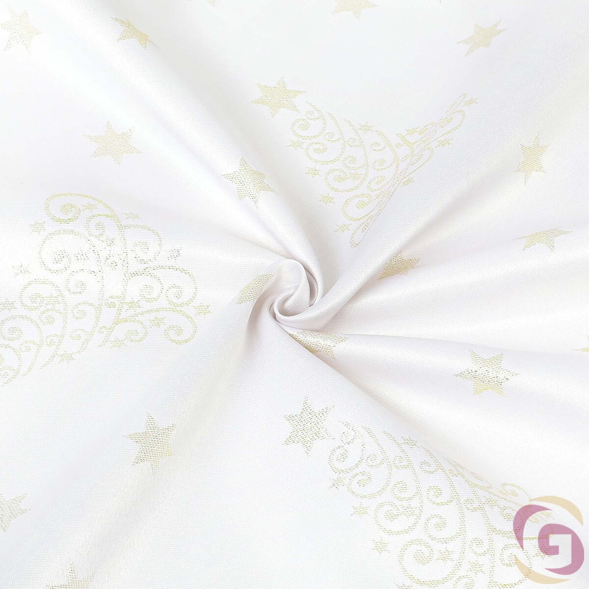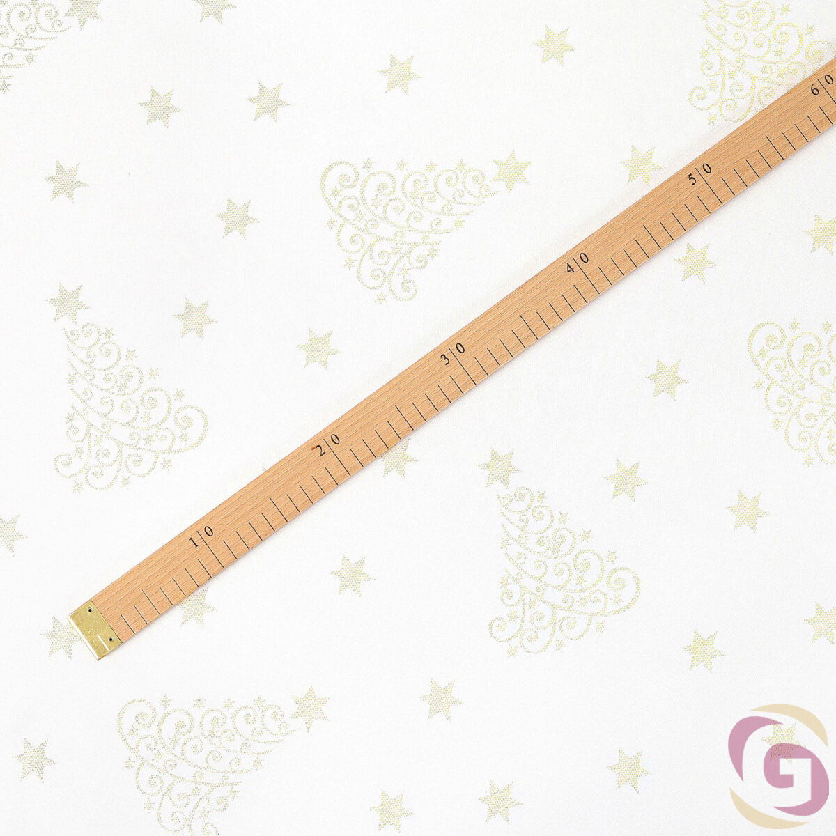 Weihnachtlicher Teflonstoff für Tischdecken – Goldene Tannenbäume und Sterne