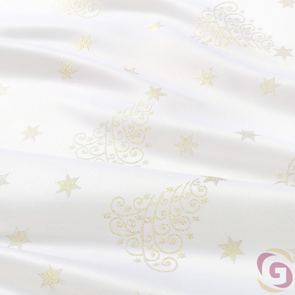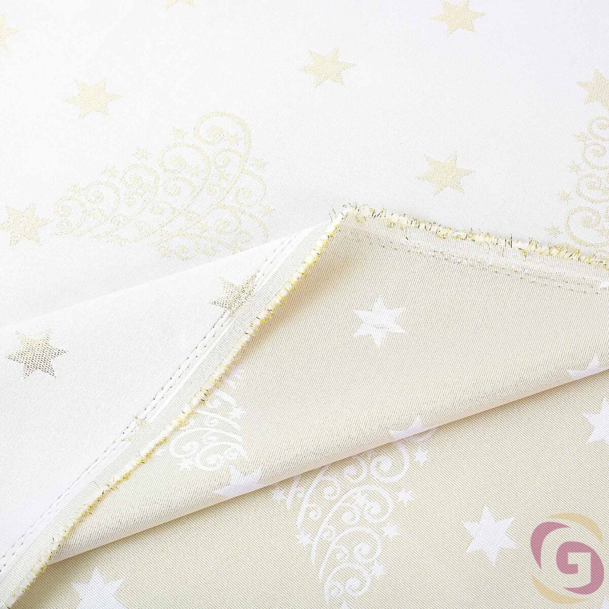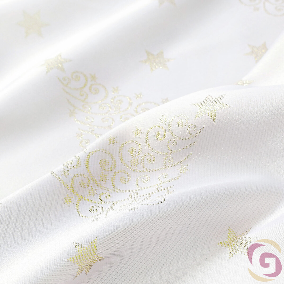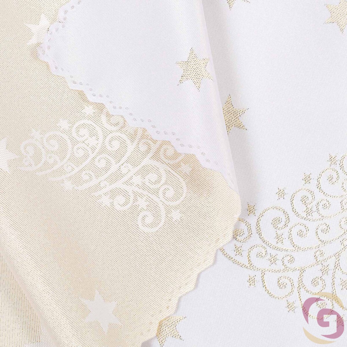 Weihnachtlicher Teflonstoff für Tischdecken – Goldene Tannenbäume und Sterne