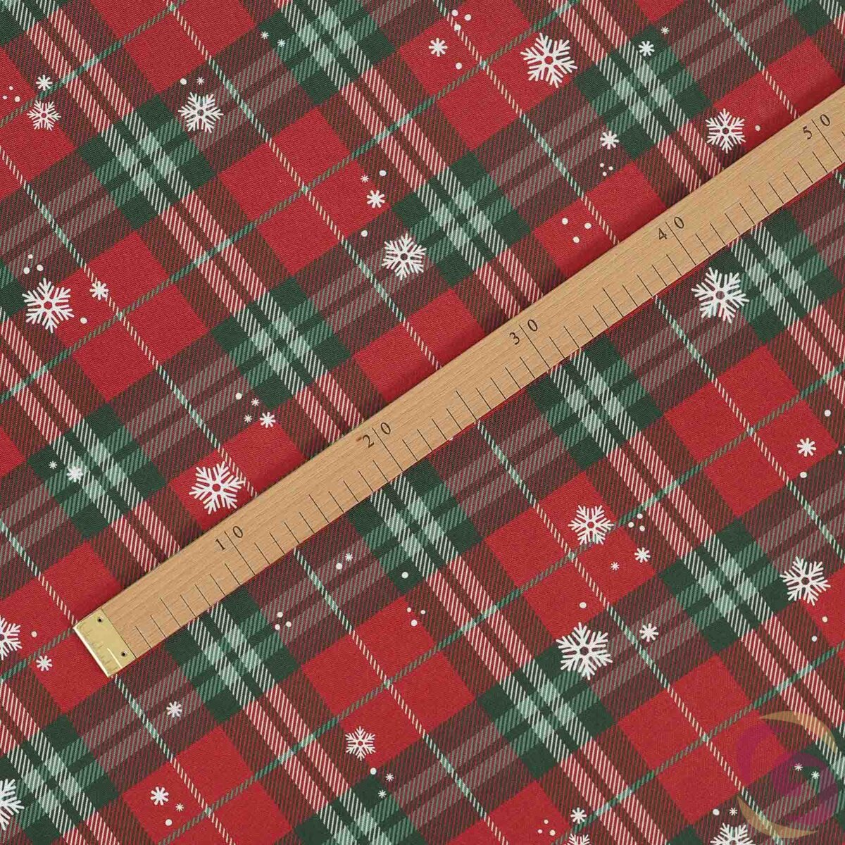 Einseitiger Dekorstoff mit Teflon-Ausrüstung, mit Motiv von Rotkariert mit Schneeflocken. Die Stoffbreite beträgt 160 cm. Hergestellt aus 100% Polyester mit einem Gewicht von 220 g/m². Den Teflonstoff bieten wir als Meterware an, die Mindestabnahme beträgt 0,5 m. Aus dem Teflonstoff mit Weihnachtsmotiv von Rotkariert mit Schneeflocken bieten wir außerdem fertige Produkte an.