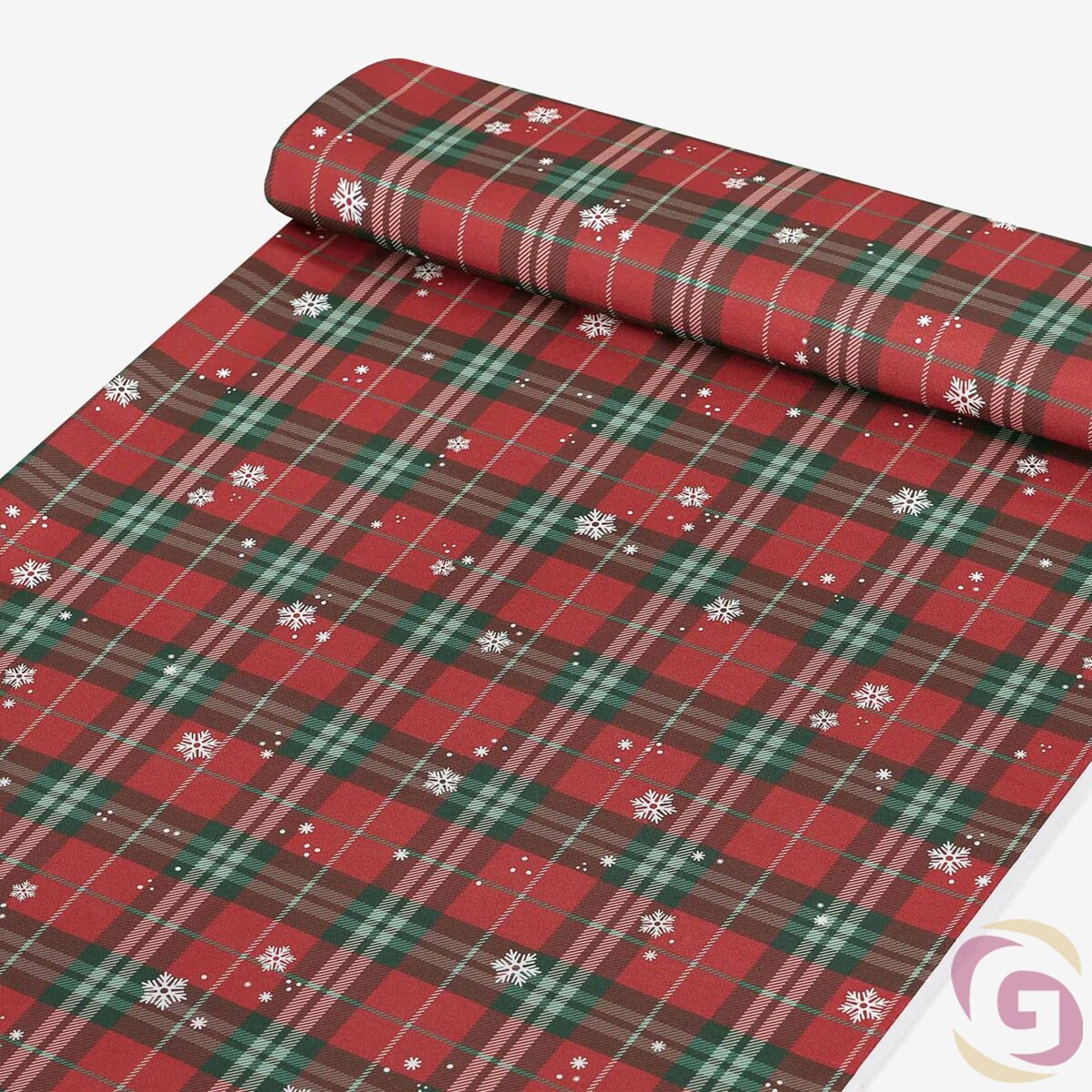 Weihnachtlicher Teflonstoff für Tischdecken – Rotkariert mit Schneeflocken
