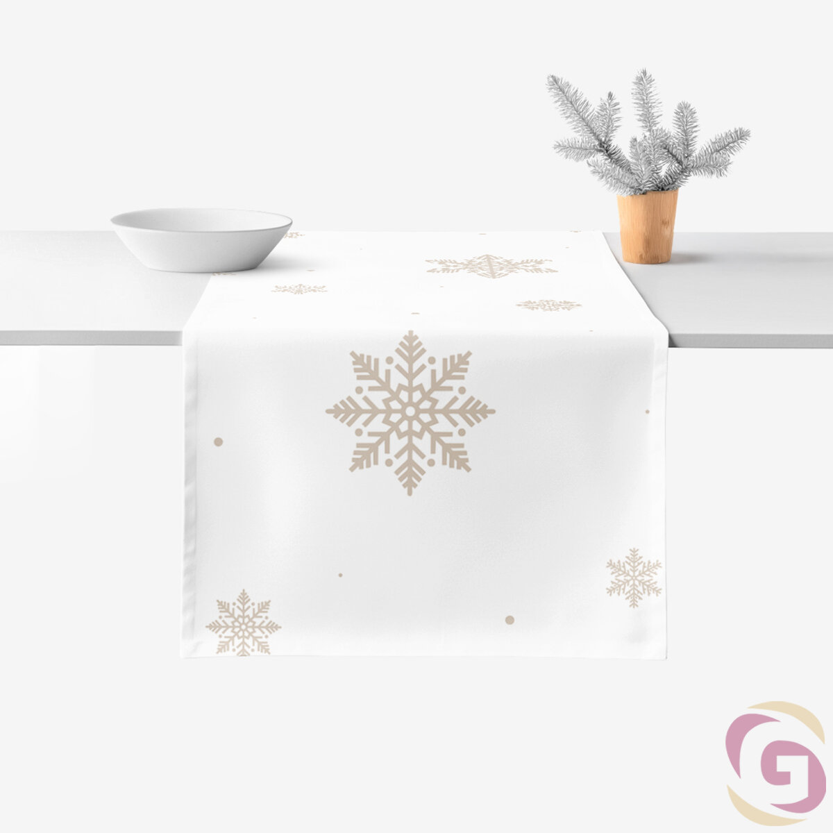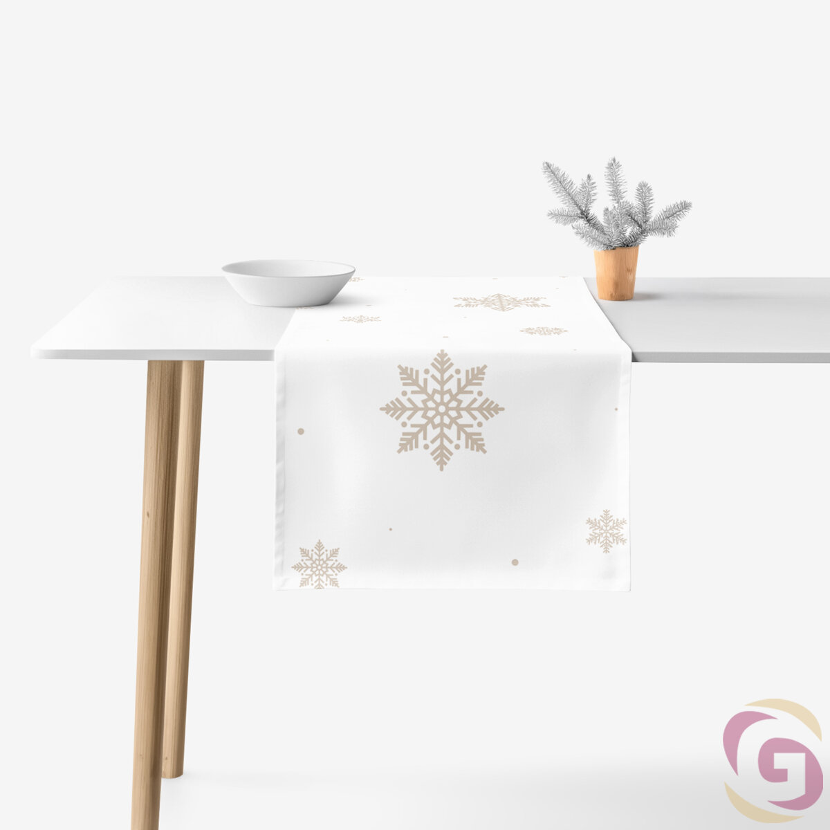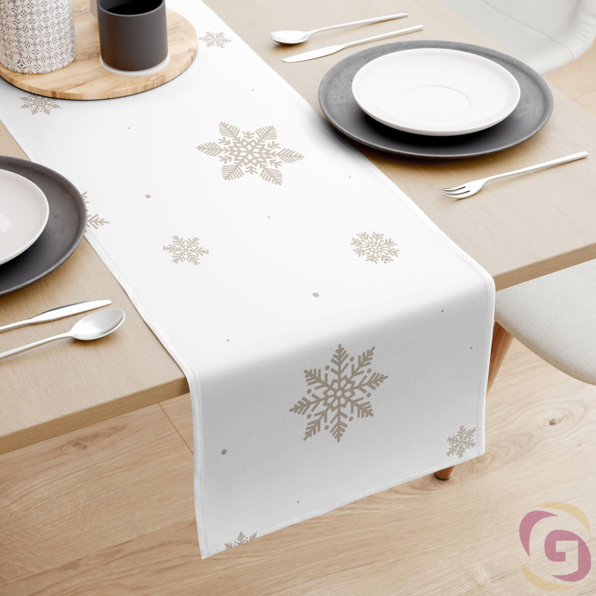 Weihnachtlicher Tischläufer aus 100% Baumwolle - Schneeflocken auf Weiß