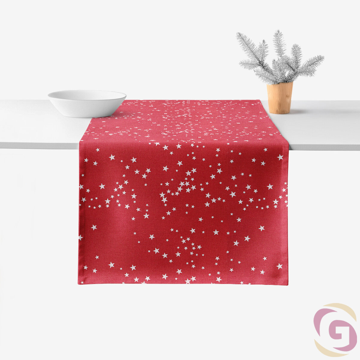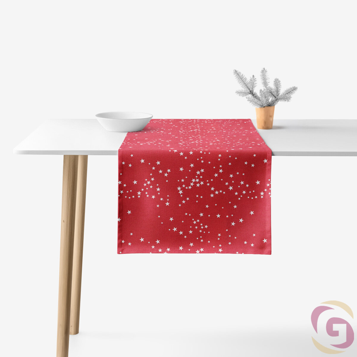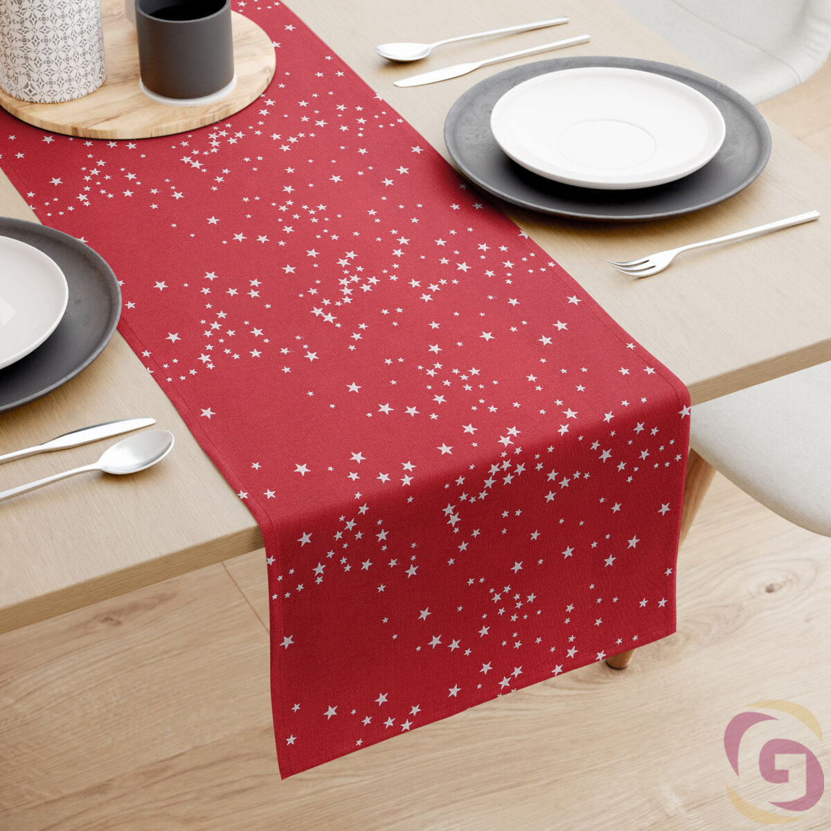 Weihnachtlicher Tischläufer Valencia - Sterne auf rotem Hintergrund