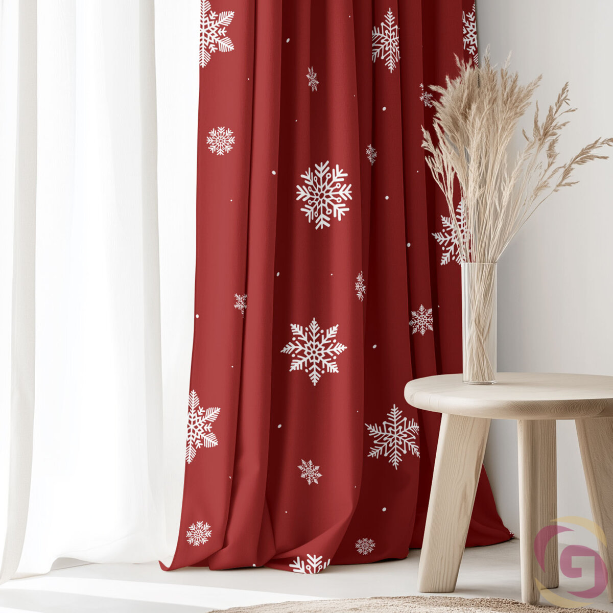 Weihnachtlicher Vorhang aus Baumwolle - Schneeflocken auf Rot