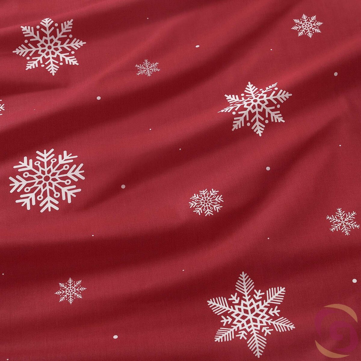 Weihnachtlich Bettwäsche aus Baumwolle - Schneeflocken auf Rot