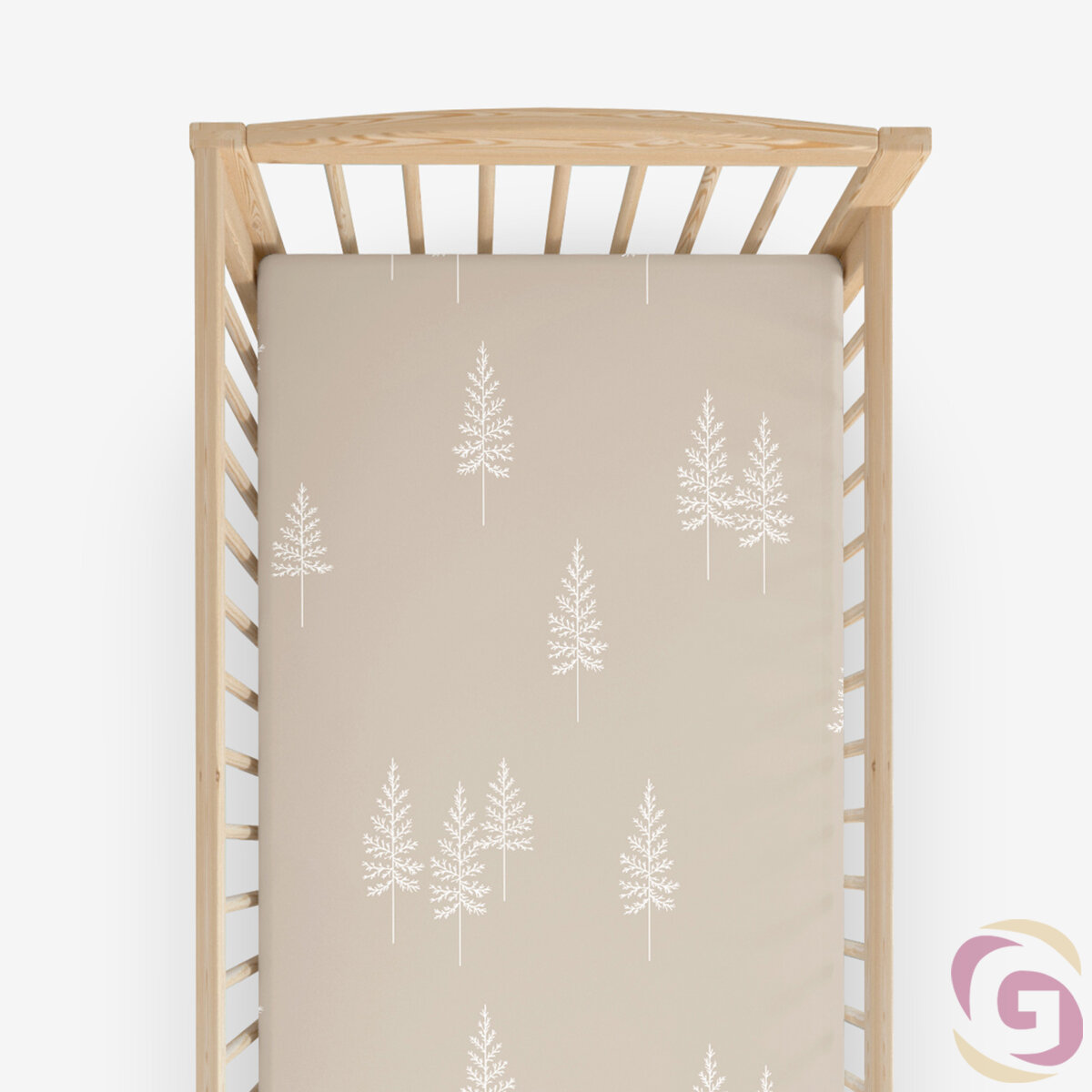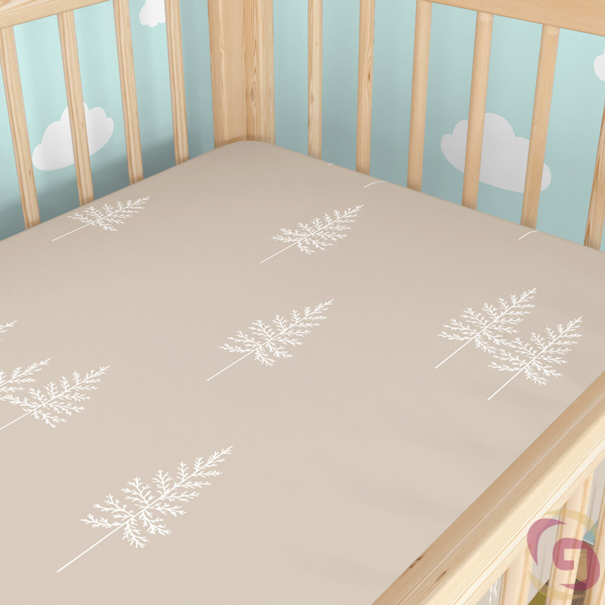 Weihnachtliches Spannbetttuch aus Baumwolle für Babybetten - Nordische Tannenbäume