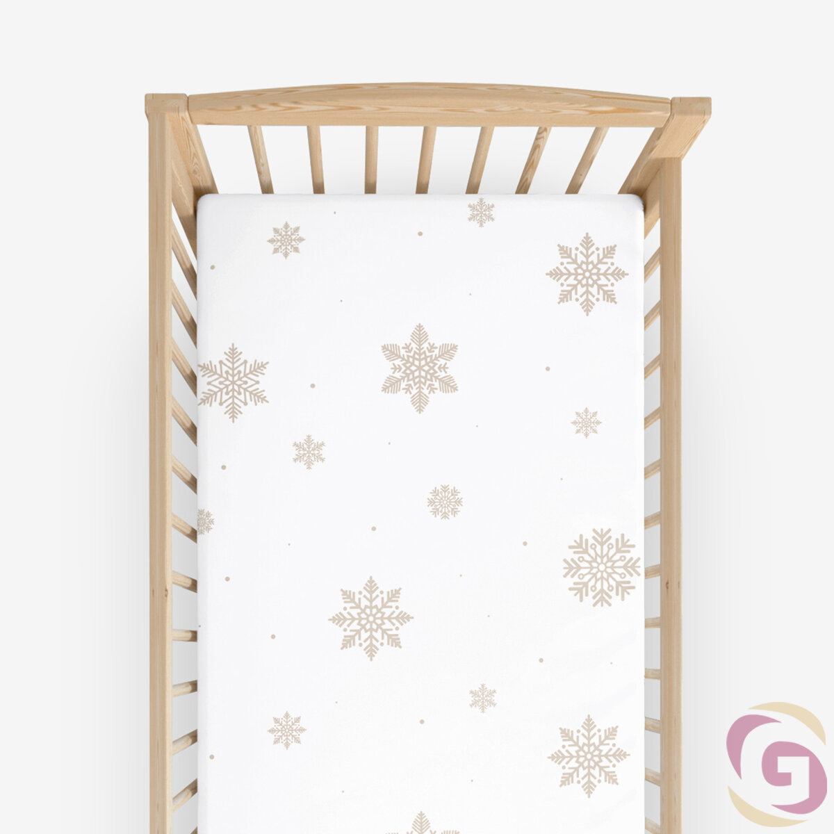 Weihnachtliches Spannbetttuch aus Baumwolle für Babybetten - Schneeflocken auf Weiß