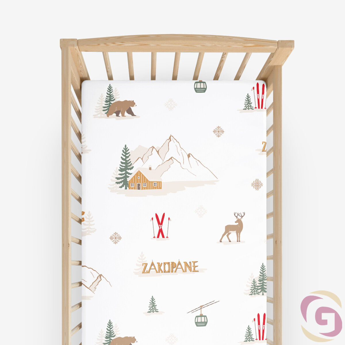 Weihnachtliches Spannbetttuch aus Baumwolle für Babybetten - Zakopane