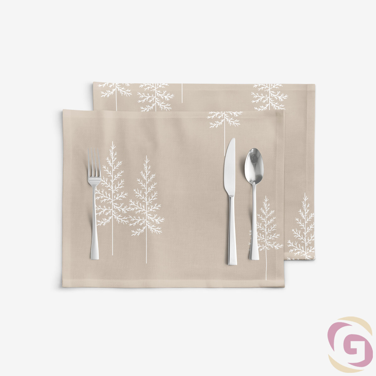Weihnachtliches Tischset 100% Baumwollköper - Nordische Tannenbäume - 2 Stück