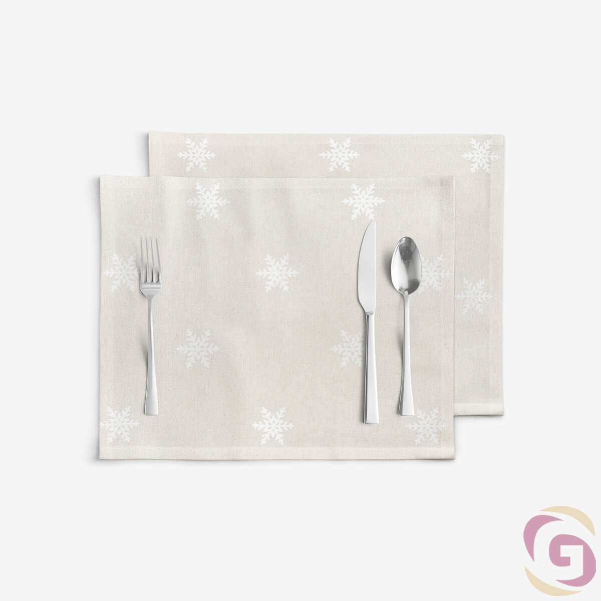 Weihnachtliches Tischset Natura - Schneeflocken auf natürlichem - Set 2 Stücke