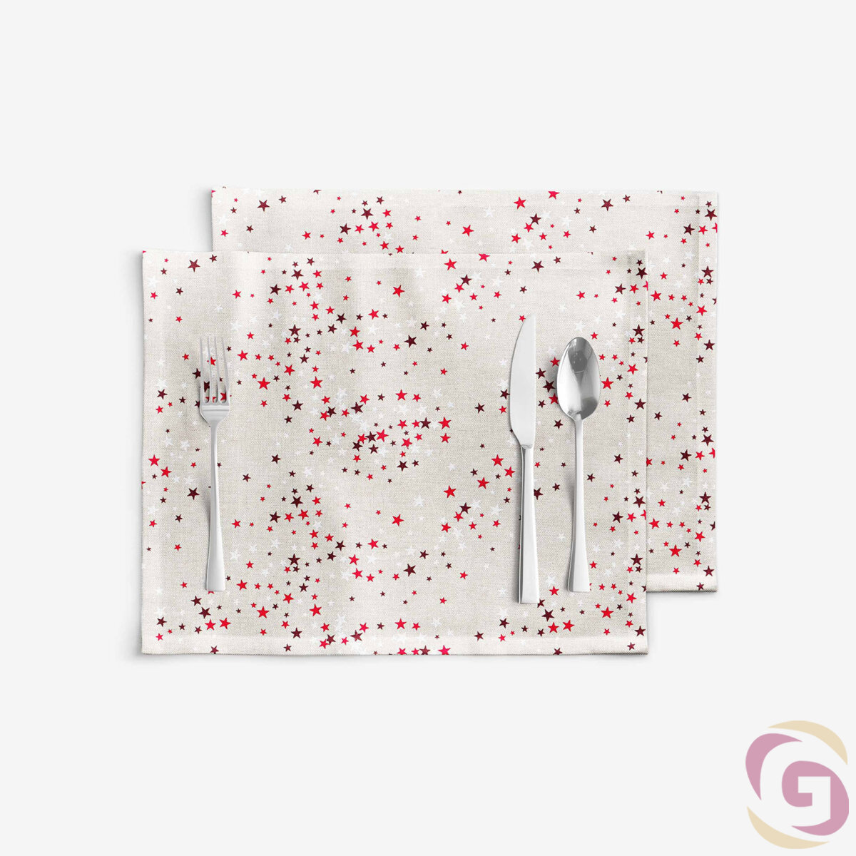 Weihnachtliches Tischset Valencia - Sterne auf Naturfarbe - Set 2 Stücke