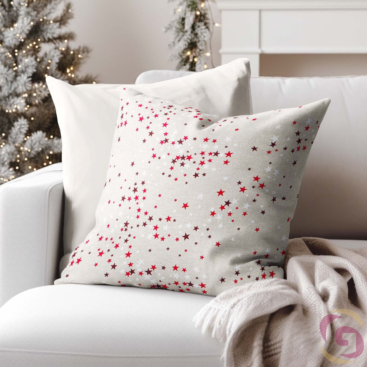 Weihnachtskissenbezug Valencia – Sterne auf Naturfarbe